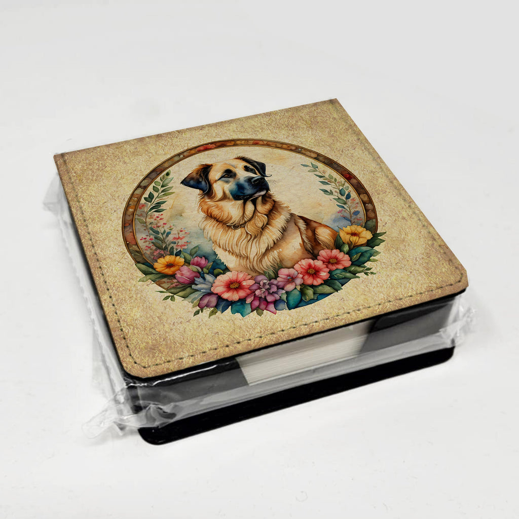 PU Leather Note Paper Holder featuring breed specific Anatolian Shepherd Dog artwork. Elevate your workspace with this PU Leather Note Paper Holder, crafted to resemble luxurious leather without the use of animal products. Made from durable synthetic PU leather, it offers both a premium look and eco-friendly appeal. This note holder, compactly sized at 4.25 x 4.25 x 1.25 inches, includes about 160 sheets of 3.75 x 3.75-inch note paper—ideal for quick notes and reminders. An exclusive artist-designed cover makes each holder uniquely vibrant, adding a splash of color and personality to any desk or office. The discrete design keeps note paper hidden, maintaining a neat and organized workspace. Perfect as a gift or for personal use, this stylish holder is refillable with standard paper, ensuring long-lasting utility. A must-have for anyone seeking a sophisticated, artful touch to their workspace while supporting animal-friendly products. Add style, organization, and creativity to your everyday routine with this elegant note paper holder.