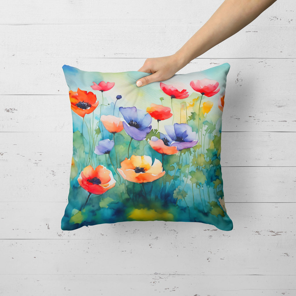 Throw Pillow featuring breed specific Anemones artwork. Revitalize your outdoor or indoor living space with Caroline's Treasures 18x18 Fabric Decorative Pillow. With a generously sized dimension of approximately 18 inches by 18 inches, this pillow makes a comfortable and aesthetic addition to any seating area. Made from a unique, water-resistant material developed by Caroline's Treasures, the pillow sham is 100% polyester fabric that's durable and ready to weather any condition. Its vibrant, full-color artwork will not fade over time as it is dyed with color-fast dyes. Whether you place it on your patio furniture, porch, veranda, or indoor couch, its soft canvas fabric ensures a cozy experience. The pillow is handcrafted in the United States, featuring a sham created from three pieces of fabric and a polyester insert for enduring shape and overstuffed comfort. Despite being robustly built to endure the outdoors, it is as soft and snug as your favorite indoor cushions. Please note, as all our pillows are handmade, sizes may vary slightly, adding to the charm of this unique decorative item.
