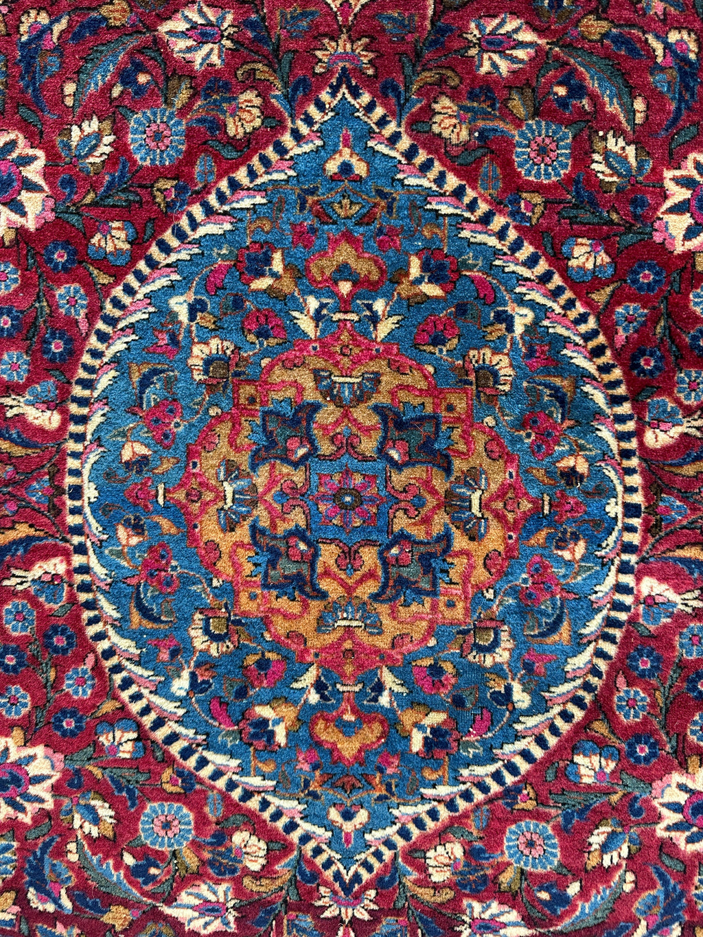 Discover a rare antique Persian Kashan Debir rug (circa 1920s) from Rugistan. Hand-knotted in fine wool, this 4'3" x 6'4" rug features a classic central medallion, rich floral design, and collectible quality. Perfect for traditional or luxury interiors.