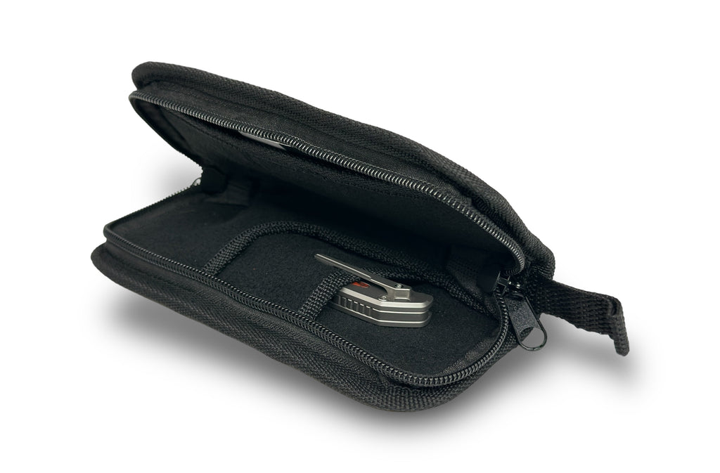 For added safety and usability, the knife includes jimpings around the thumb rest and spacer. It also comes equipped with a lanyard hole and a removable titanium clip that can be positioned tip-up/right, making it adaptable for various carrying preferences. The Aphex Mini is accompanied by a high-quality nylon case, providing a secure and attractive storage option. This knife blends practicality with sophisticated design, making it an excellent choice for both everyday use and collectors alike.