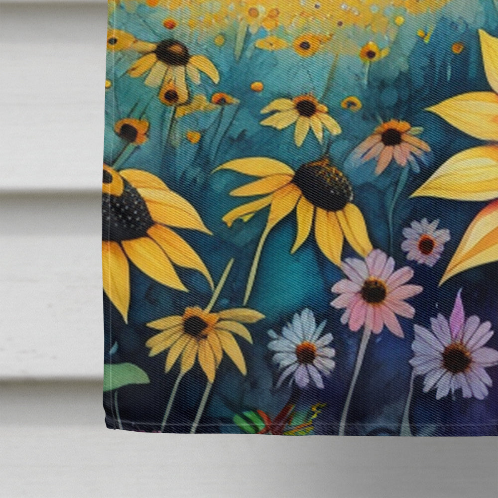 Shown here is the Black-eyed Susans in Color House Flag from Caroline's Treasures featuring artwork of a Black-eyed Susans in a Everyday design. The detailed illustration and vibrant colors make it a standout accent for your home. Fill your home with vibrant beauty from our Flowers in Color Collection. Featuring richly hued floral designs that celebrate the joy of color and nature’s charm, this collection brings lively style and uplifting personality to home décor and thoughtful gifts for flower lovers. Presenting our Heavy Duty Polyester House Size Decorative Sleeve Pole Flag, a vibrant addition to enhance the aesthetic appeal of your home. This large decorative flag, measuring approximately 28 x 40 inches, offers ample coverage and visibility. Each flag is meticulously sewn and made individually, ensuring a unique piece that may slightly vary in size. It's a sleeve pole flag, designed to fit a standard decorative flag pole effortlessly. Please note that the flag pole and bracket are not included and should be purchased separately. What sets our flag apart is its dual-sided print. The design is mirrored on both sides of the fabric, allowing for uniform visibility regardless of the angle. Printed in full color, our flag showcases vibrant hues that truly stand out. To ensure lasting vibrancy and durability, the dyes are heat-set into the fabric. This ensures your flag remains bright and captivating through various weather conditions. Elevate the look of your home with our Heavy Duty Polyester House Size Decorative Sleeve Pole Flag! Black-eyed Susans are known for golden petals and dark centers. Their sunny appearance feels warm and inviting. Perfect for: Front porches, gardens, yards, patios, Everyday decorating, Flowers-themed homes, or year-round display for Black-eyed Susans enthusiasts Makes a heartfelt gift for: Black-eyed Susans owners, Flowers lovers, Everyday gifts, pet parents, friends who adore their Black-eyed Susans, or anyone celebrating Flowers.