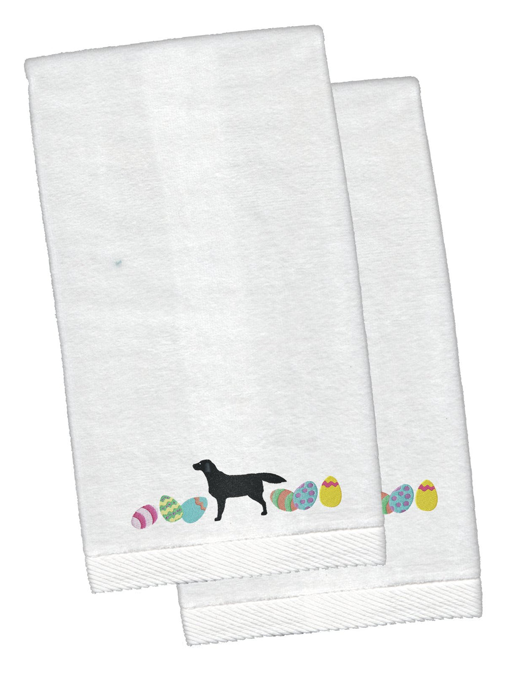 Decorate your space with our Easter Labrador Retriever artwork on a Emboidered Hand Towels. A set of Two Hand Towels that are 100 percent cotton. Each towel measures 16 inches by 26 inches. These top-of-the-line, heavyweight, dobby hemmed hand towels are made of 100% ring spun cotton triple sheared terry velour fabric. Each towel features an embroidered design. Machine wash cold and tumble dry with low heat and do not bleach. Always use a pressing cloth when pressing the design.