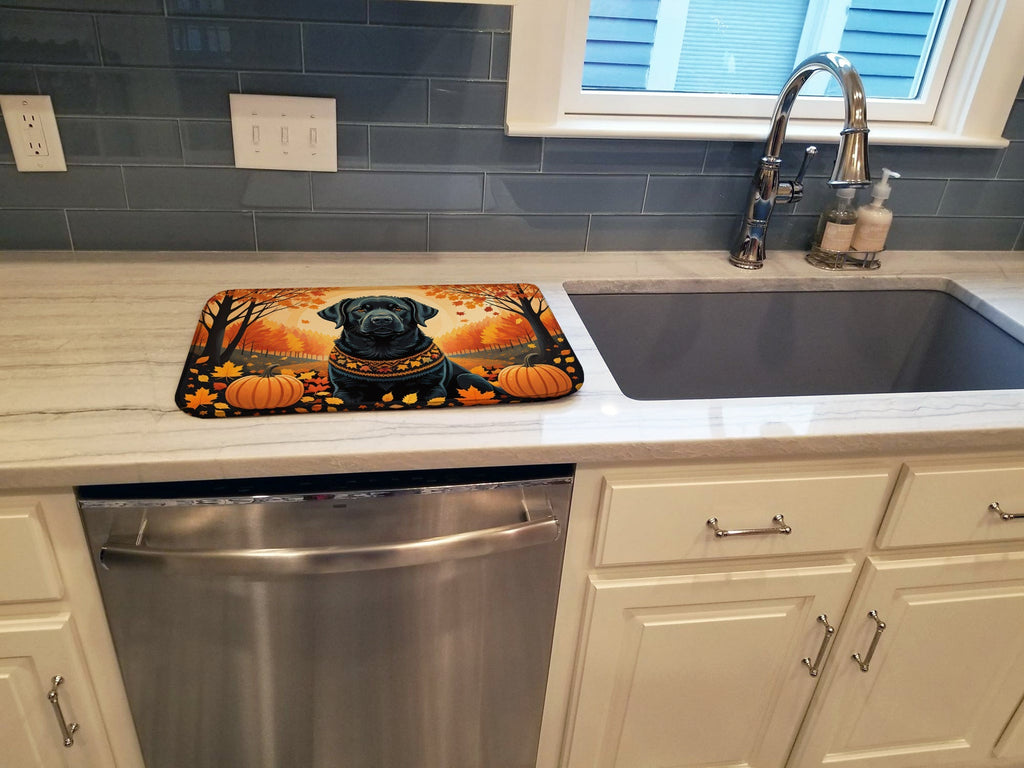 Shown here is the Black Labrador Retriever Fall Dish Drying Mat from Caroline's Treasures featuring artwork of a Labrador Retriever in a Fall design. The detailed illustration and vibrant colors make it a standout accent that celebrates both seasonal style for you home. Embrace the cozy charm of the season with our Falling Autumn Leaves Collection. Featuring rich, leaf-inspired designs that capture the colors and spirit of autumn, this collection brings warm style and seasonal flair to home d�cor and thoughtful fall gifts. Say goodbye to messy countertops and soggy dish towels with our innovative dish drying mat. Our high-quality dish drying pad is designed to keep your countertops dry while offering a stylish and efficient solution. Whether you're air drying dishes, glasses, stemware, silverware, pots, pans, bottles, or even fruits and vegetables, our dish mat is the perfect choice. The 14 inches x 22 inches size fits most counters and dish drying racks, and the non-slip design ensures stability. Made with water-absorbent polyester and a polyurethane foam insert, our dish drying mat is not only functional but also durable. It's machine washable and printed in the USA for long-lasting use. The beautiful artwork adds flair to your kitchen decor, making it a perfect housewarming gift or present for any occasion. Upgrade your kitchen experience with our absorbent and versatile dish drying mat. Labrador Retrievers are strong dogs with kind expressions. Their appearance reflects loyalty and reliability. Perfect for: Kitchen counters and sinks, everyday dish drying and countertop protection, Dogs-themed homes, or year-round use for Labrador Retriever lovers. Makes a heartfelt gift for: Labrador Retriever owners, Dogs lovers, gifts, pet parents, friends who adore their Labrador Retriever, or anyone celebrating Dogs.