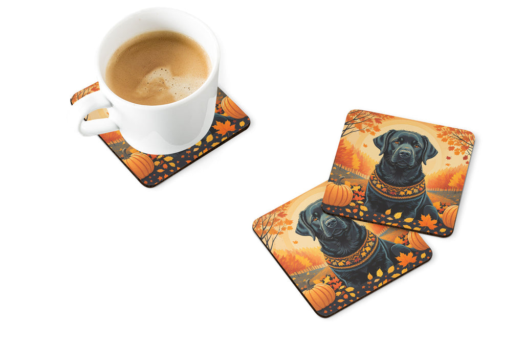 Shown here is the Black Labrador Retriever Fall Foam Coasters from Caroline's Treasures featuring artwork of a Labrador Retriever in a Fall design. The detailed illustration and vibrant colors make it a standout accent that celebrates both seasonal style for you home. Embrace the cozy charm of the season with our Falling Autumn Leaves Collection. Featuring rich, leaf-inspired designs that capture the colors and spirit of autumn, this collection brings warm style and seasonal flair to home d�cor and thoughtful fall gifts. Presenting our Set of 4 Foam Coasters, a stylish and practical addition to your table setting. Each square coaster, measuring 3 1/2 inches by 3 1/2 inches, is perfectly sized to accommodate various drinkware, from coffee mugs to tumblers. These coasters stand out with their full-color artwork, permanently dyed onto the material for a vibrant and fade-resistant finish. They're not just functional, they're a fashionable statement, adding a touch of flair to any gathering or event. Our foam coasters serve a dual purpose - they protect your table from water stains and are perfect for both hot and cold drinks. The material used is similar to that of our high-quality mouse pads, ensuring durability and heat resistance. These coasters are easy to maintain - simply wash them in the top of your dishwasher and lay flat to dry. The design won't come off, ensuring they retain their vivid colors for years. Pair them with one of our insulated coolers or huggers for a cohesive, thoughtful gift set. Enhance your beverage experience with our Set of 4 Foam Coasters. Labrador Retrievers are strong dogs with kind expressions. Their appearance reflects loyalty and reliability. Makes a heartfelt gift for: Labrador Retriever owners, Dogs lovers, gifts, pet parents, friends who adore their Labrador Retriever, or anyone celebrating Dogs.
