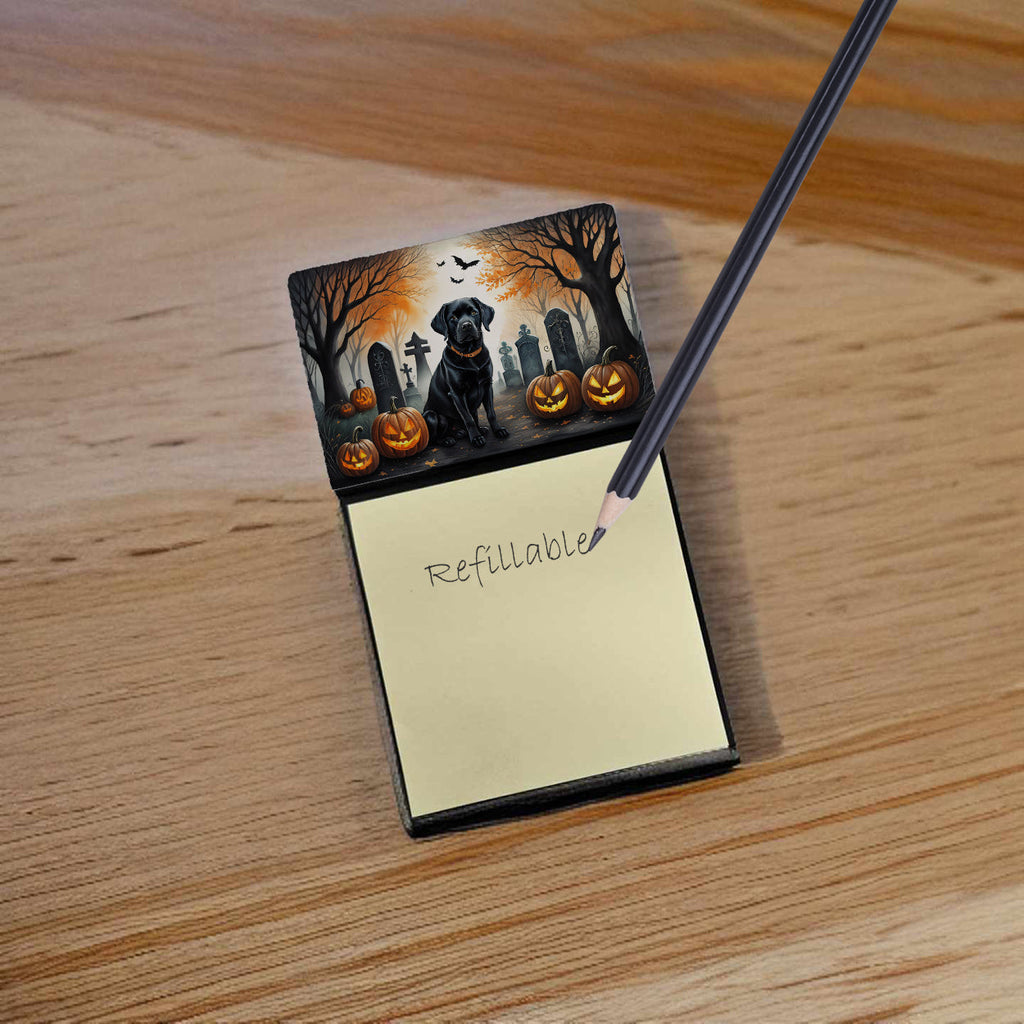 Shown here is the Black Labrador Retriever Spooky Halloween Watercolor Sticky Note Holder from Caroline's Treasures featuring artwork of a Labrador Retriever in a Halloween design. The detailed illustration and vibrant colors make it a standout accent for your home. Get into the seasonal spirit with our Spooky Halloween Collection. Featuring playful and eerie designs that capture the fun and mystery of Halloween, this collection brings festive personality and spirited style to home décor and thoughtful seasonal gifts. Crafted for convenience and style, this refillable sticky note dispenser includes a 3 inches x 3 inches sticky note pad and features a smooth top board printed with original artwork. To refill, simply attach the last sheet of a new pad and a piece of tape — it’s that easy. Whether you’re leaving reminders, jotting quick notes, or gifting it to a friend, this decorative sticky note holder makes a thoughtful, practical, and eye-catching addition to desks, kitchen counters, or magnetic surfaces. Add a business-card size magnet to the back (sold separately) to transform it into a handy refrigerator memo station. it’s organization with personality. Labrador Retrievers are strong dogs with kind expressions. Their appearance reflects loyalty and reliability. Perfect for: Offices, desks, and workspaces, everyday organization, Dogs-themed décor, or year-round enjoyment for Labrador Retriever enthusiasts. Makes a heartfelt gift for: Labrador Retriever owners, Dogs lovers, Halloween gifts, pet parents, friends who adore their Labrador Retriever, or anyone celebrating Dogs.
