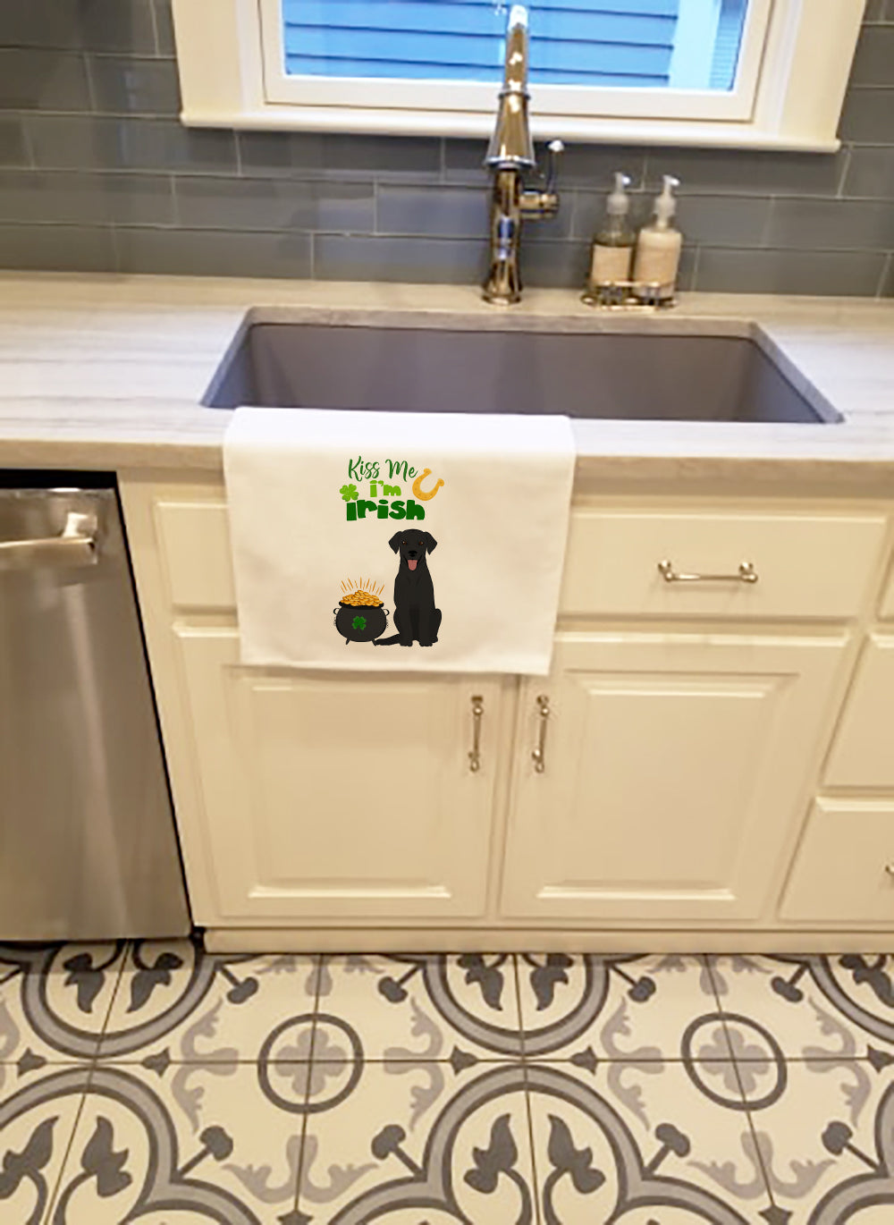 Shown here is the Black Labrador Retriever St. Patrick's Day Kitchen Towel Set of 2 from Caroline's Treasures featuring artwork of a Labrador Retriever in a St Patrick's Day design. The detailed illustration and vibrant colors make it a standout accent for your home. Spruce up your kitchen decor with Caroline's Treasures Decorative White Kitchen Towel Set. This set of two dish towels showcases beautiful artwork from one of our talented artists, making them both practical and visually appealing. These towels are crafted from 100% cotton, offering excellent absorbency and durability, making them ideal for any kitchen task. Each white towel measures 19 inches by 28 inches, providing ample coverage for drying dishes or wiping up spills. The standout feature of these towels is the full-color artwork design printed on each one. They can serve as a vibrant accent in your kitchen, turning a functional item into a delightful piece of decor. When it comes to care, these towels are machine washable in cold water and can be dried on low heat. Remember to always use a pressing cloth when pressing the design, and avoid using bleach on the decorated towel. The Decorative White Kitchen Towel Set makes a great gift or a stylish addition to your own kitchen. Labrador Retrievers are strong dogs with kind expressions. Their appearance reflects loyalty and reliability. Makes a heartfelt gift for: Labrador Retriever owners, Dogs lovers, St Patrick's Day gifts, pet parents, friends who adore their Labrador Retriever, or anyone celebrating Dogs.