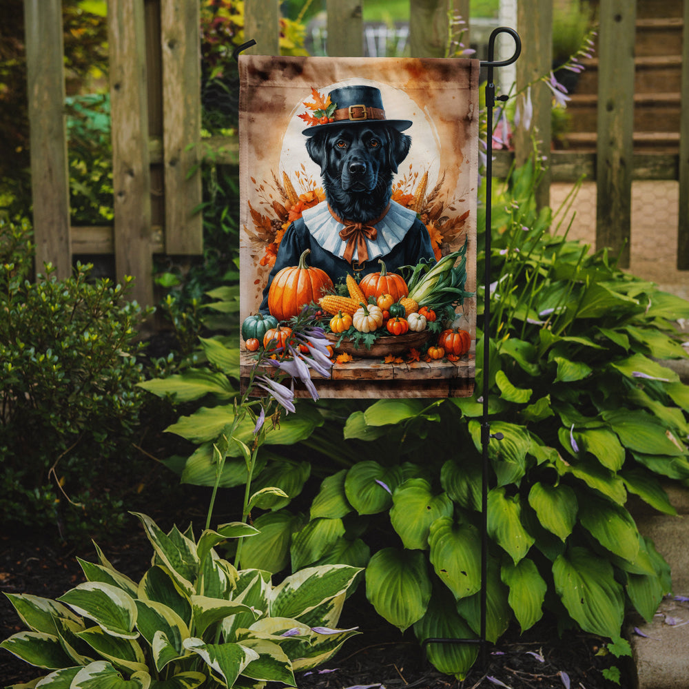 Shown here is the Black Labrador Retriever Thanksgiving Garden Flag from Caroline's Treasures featuring artwork of a Labrador Retriever in a Thanksgiving design. The detailed illustration and vibrant colors make it a standout accent that celebrates both seasonal style and love for the subject. Celebrate togetherness and gratitude with our Thanksgiving Feast Collection.