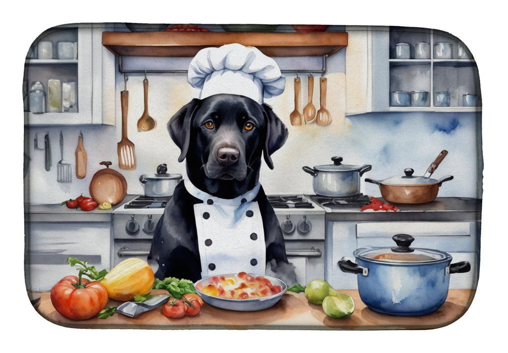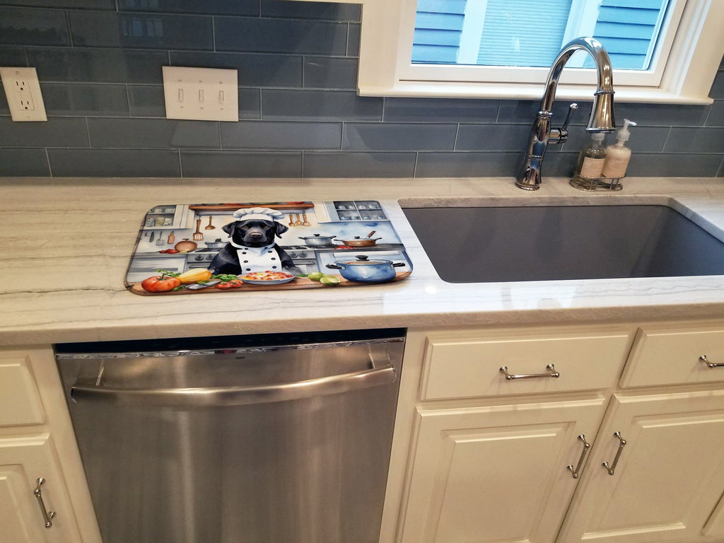 Shown here is the Black Labrador Retriever The Chef Dish Drying Mat from Caroline's Treasures featuring artwork of a Labrador Retriever in a Everyday design. The detailed illustration and vibrant colors make it a standout accent for your home. Bring culinary creativity to life with our The Chef Collection. Featuring kitchen-inspired designs that celebrate food, cooking, and playful chef-themed artwork, this collection adds personality and flavor to home d�cor and thoughtful gifts. Say goodbye to messy countertops and soggy dish towels with our innovative dish drying mat. Our high-quality dish drying pad is designed to keep your countertops dry while offering a stylish and efficient solution. Whether you're air drying dishes, glasses, stemware, silverware, pots, pans, bottles, or even fruits and vegetables, our dish mat is the perfect choice. The 14 inches x 22 inches size fits most counters and dish drying racks, and the non-slip design ensures stability. Made with water-absorbent polyester and a polyurethane foam insert, our dish drying mat is not only functional but also durable. It's machine washable and printed in the USA for long-lasting use. The beautiful artwork adds flair to your kitchen decor, making it a perfect housewarming gift or present for any occasion. Upgrade your kitchen experience with our absorbent and versatile dish drying mat. Labrador Retrievers are strong dogs with kind expressions. Their appearance reflects loyalty and reliability. Perfect for: Kitchen counters and sinks, everyday dish drying and countertop protection, Dogs-themed homes, or year-round use for Labrador Retriever lovers. Makes a heartfelt gift for: Labrador Retriever owners, Dogs lovers, Everyday gifts, pet parents, friends who adore their Labrador Retriever, or anyone celebrating Dogs.