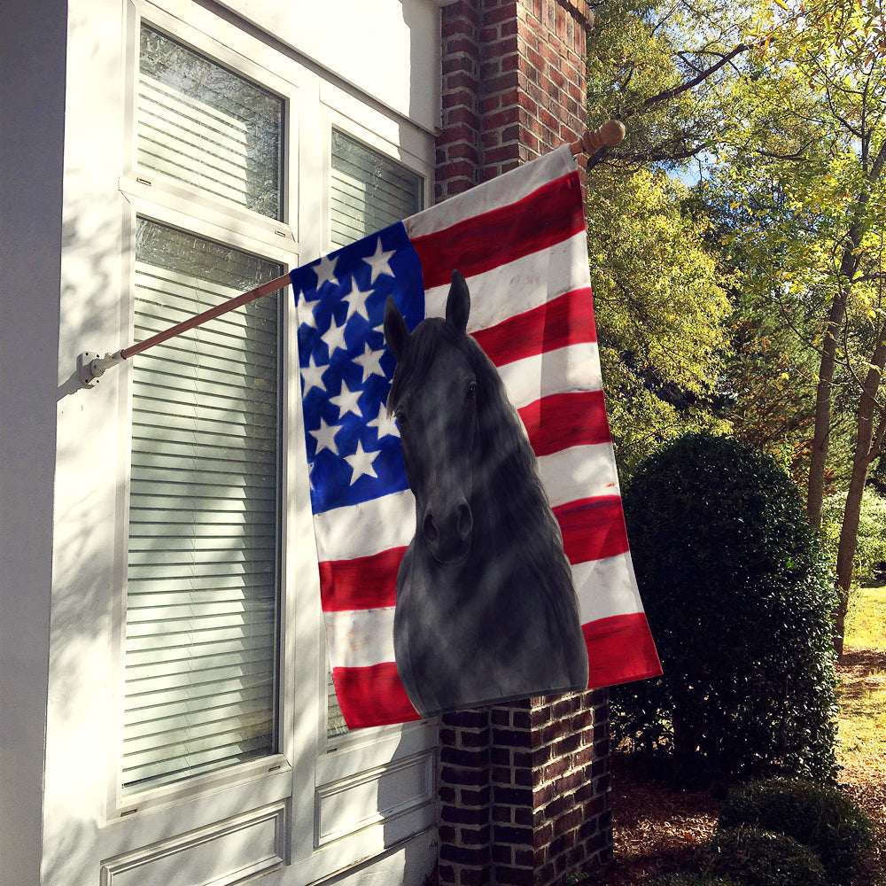 Shown here is the Black Morgan Horse American House Flag from Caroline's Treasures featuring artwork of a Morgan in a design. The detailed illustration and vibrant colors make it a standout accent that celebrates both seasonal style and love for the subject. Patriotic celebrations honor national pride, tradition, and the spirit of togetherness. Red, white, and blue décor adds a classic, meaningful touch to homes during summer holidays and beyond. Presenting our Heavy Duty Polyester House Size Decorative Sleeve Pole Flag, a vibrant addition to enhance the aesthetic appeal of your home. This large decorative flag, measuring approximately 28 x 40 inches, offers ample coverage and visibility. Each flag is meticulously sewn and made individually, ensuring a unique piece that may slightly vary in size. It's a sleeve pole flag, designed to fit a standard decorative flag pole effortlessly. Please note that the flag pole and bracket are not included and should be purchased separately. What sets our flag apart is its dual-sided print. The design is mirrored on both sides of the fabric, allowing for uniform visibility regardless of the angle. Printed in full color, our flag showcases vibrant hues that truly stand out. To ensure lasting vibrancy and durability, the dyes are heat-set into the fabric. This ensures your flag remains bright and captivating through various weather conditions. Elevate the look of your home with our Heavy Duty Polyester House Size Decorative Sleeve Pole Flag! Perfect for: Front porches, gardens, yards, patios, 4th of July decorating, Farm Animals-themed homes, or year-round display for Morgan enthusiasts Morgan horses feature compact muscular builds and refined heads. Their appearance reflects strength and versatility. Makes a heartfelt gift for: Morgan owners, Farm Animals lovers, 4th of July gifts, pet parents, friends who adore their Morgan, or anyone celebrating Farm Animals.