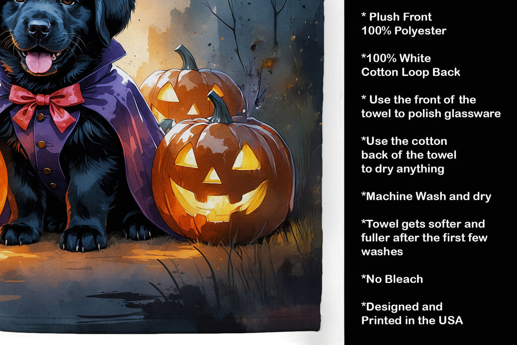 Shown here is the Black Newfoundland Puppy Halloween Kitchen Towel from Caroline's Treasures featuring artwork of a Newfoundland in a Halloween design. The detailed illustration and vibrant colors make it a standout accent that celebrates both seasonal style and love for the subject. Sink your teeth into spooky fun with our Vampire Puppy Halloween Collection. Featuring playful, canine-centric designs wrapped in Halloween style, this collection brings spirited personality and festive charm to seasonal décor and thoughtful gifts for dog lovers and Halloween fans alike. Halloween is a time for playful spooks, festive fun, and creative seasonal decorating. Fall-inspired décor helps set the mood for celebrations filled with charm, personality, and a touch of whimsy.. Bring cozy everyday charm to your sink or powder room with a plush velour towel featuring original watercolor artwork. The front is a soft, color-rich minky polyester that polishes glassware to a brilliant shine; the back is 100% white cotton terry loop for quick absorbency on hands, dishes, and counters. Artwork is dyed into the fibers for lasting color that won’t crack or peel. Finished edges keep the shape wash after wash. Size: 15" x 25". Machine wash; tumble dry low. Designed and printed in the USA. Perfect for: Kitchen counters, ovens, and towel bars, everyday drying and cleanup, Dogs-themed kitchens, or year-round use for Newfoundland lovers. Newfoundlands are gentle working dogs known for their strength and sweet temperament. Often called Newfies, this breed is cherished for its loyalty, patience, and calm confidence. Makes a heartfelt gift for: Newfoundland owners, Dogs lovers, Halloween gifts, pet parents, friends who adore their Newfoundland, or anyone celebrating Dogs.