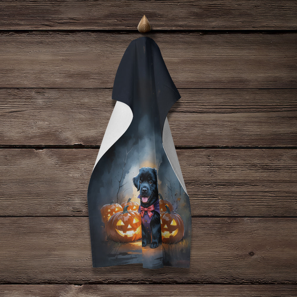 Black Newfoundland Puppy Halloween Kitchen Towel