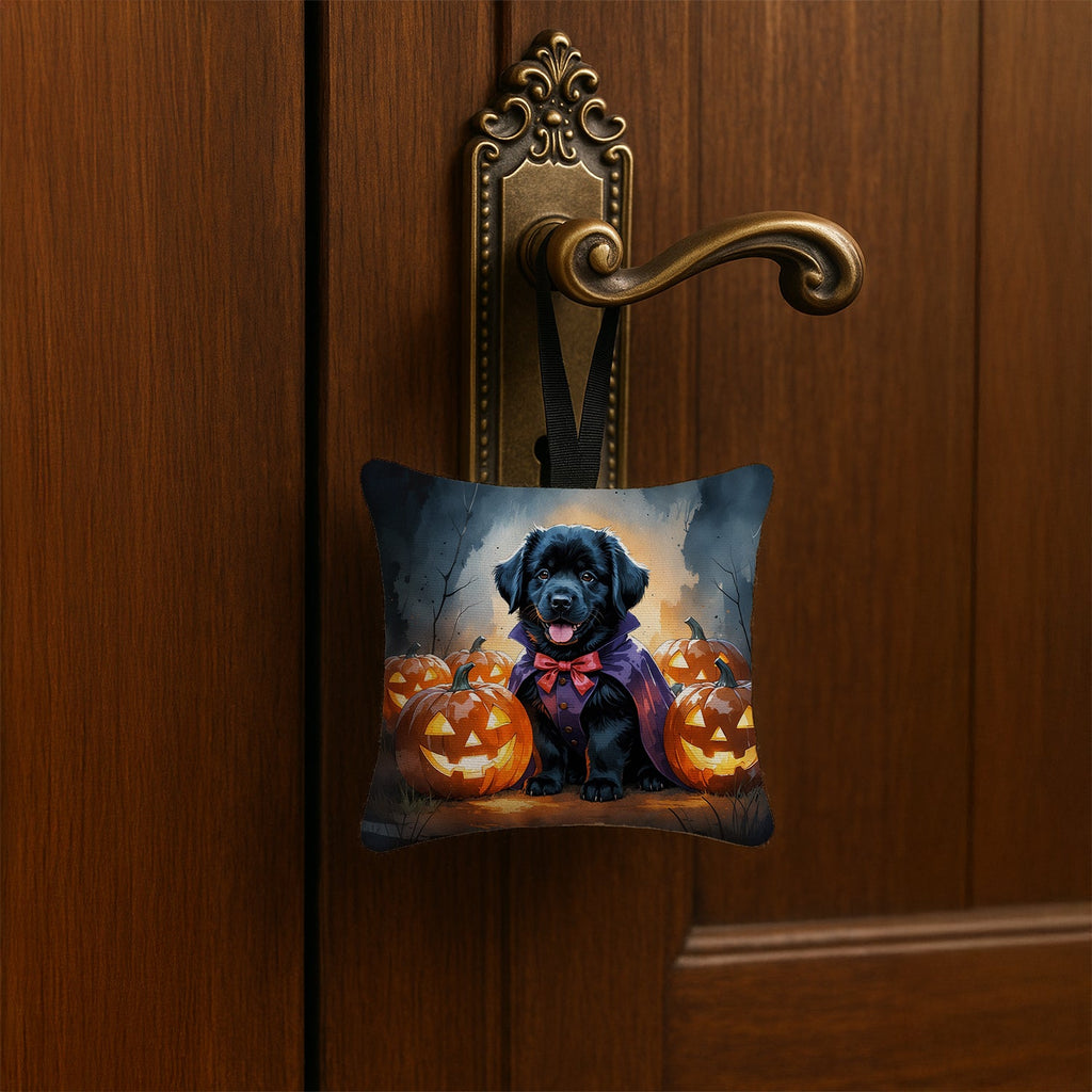 Black Newfoundland Puppy Halloween Mini Hanging Pillow Ornament 3.5 × 3.5