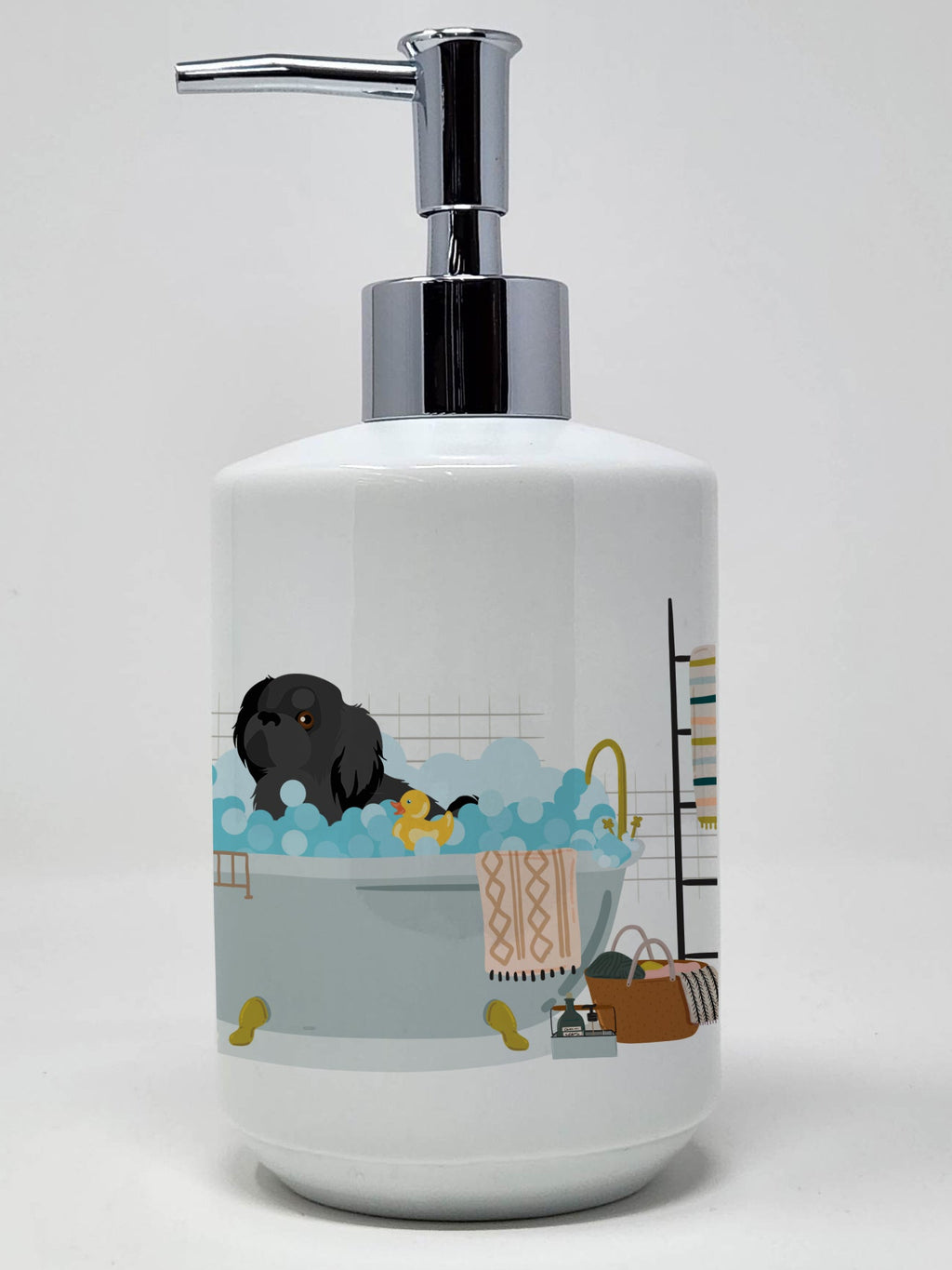Shown here is the Black Pekingese Ceramic Soap Dispenser from Caroline's Treasures featuring artwork of a Pekingese in a Everyday design. The detailed illustration and vibrant colors make it a standout accent for your home. Revitalize your kitchen or bathroom decor with the Decorative Ceramic Soap Dispenser from Caroline's Treasures. This refillable dispenser marries practicality and style, serving as a vibrant art piece in addition to its primary function. The dispenser's exterior boasts colorful artwork from one of Caroline's Treasures' artists, wrapping around the dispenser to add a touch of personality and color to your space. Measuring approximately 7 1/4 inches high and about 3 1/2 inches in diameter, it is the perfect size for any countertop. The dispenser features a sturdy pump nozzle, which screws easily into the top of the ceramic dispenser. With a simple press, you can conveniently dispense your preferred liquid soap, lotion, aromatherapy essential oil blend, shampoo, body wash, or even massage oils. The Decorative Ceramic Soap Dispenser is more than a functional item - it's a statement piece that adds a unique touch to your bathroom or kitchen decor, transforming everyday rituals into an artful experience. Pekingese are regal companion dogs known for their distinctive appearance and confident demeanor. This ancient breed is cherished for its loyalty, independence, and dignified presence. Makes a heartfelt gift for: Pekingese owners, Dogs lovers, Everyday gifts, pet parents, friends who adore their Pekingese, or anyone celebrating Dogs.