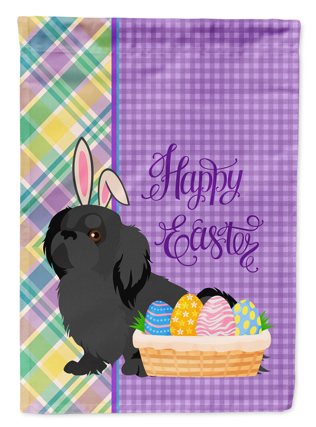 Shown here is the Black Pekingese Easter Garden Flag from Caroline's Treasures featuring artwork of a Pekingese in a Easter design. The detailed illustration and vibrant colors make it a standout accent for your home. Enhance the beauty of your garden, patio, or yard with Caroline's Treasures Decorative Garden Flag, proudly made in the USA. Crafted from two pieces of thick, double-sided polyester fabric, this 2-ply garden flag is designed to withstand various weather conditions, making it water-resistant and weatherproof. Featuring correctly readable words on both sides, this garden flag offers a delightful visual experience from any angle. With its heavier weight, it stands out among other garden flags, ensuring stability and durability even in wind, rain, and snow. Measuring approximately 11 1/4 inches by 15 1/2 inches, this flag allows you to personalize your outdoor decor. It comes with a 1 1/2-inch sleeve sewn in, allowing easy attachment to any standard garden flag stand or garden size porch hanger (sold separately). Make a statement in your outdoor space with Caroline's Treasures Decorative Garden Flag, a vibrant and high-quality flag that adds color and personality to your surroundings. Proudly made in the USA, it's a symbol of quality craftsmanship and attention to detail. Pekingese are regal companion dogs known for their distinctive appearance and confident demeanor. This ancient breed is cherished for its loyalty, independence, and dignified presence. Perfect for: Front porches, gardens, yards, patios, Easter decorating, Dogs-themed homes, or year-round display for Pekingese enthusiasts Makes a heartfelt gift for: Pekingese owners, Dogs lovers, Easter gifts, pet parents, friends who adore their Pekingese, or anyone celebrating Dogs.