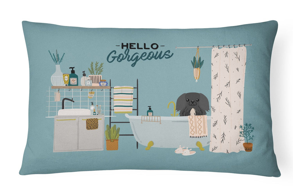 Black Pekingese in Bathtub Canvas Fabric Decorative Pillow CK7529PW1216