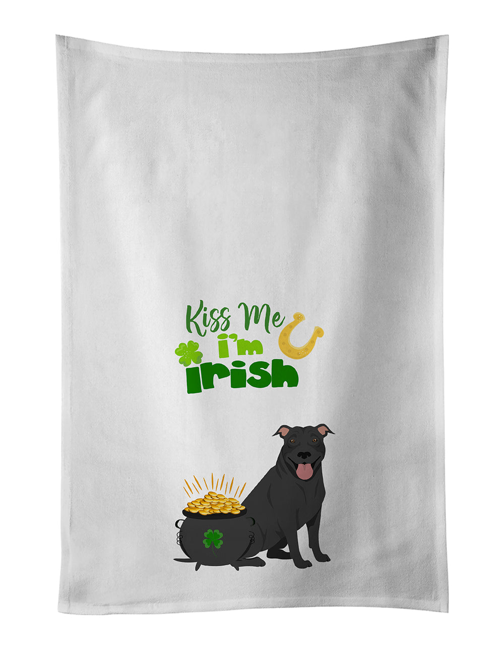Shown here is the Black Pit Bull Terrier St. Patrick's Day Kitchen Towel Set of 2 from Caroline's Treasures featuring artwork of a Pit Bull Terrier in a St Patrick's Day design. The detailed illustration and vibrant colors make it a standout accent for your home. Spruce up your kitchen decor with Caroline's Treasures Decorative White Kitchen Towel Set. This set of two dish towels showcases beautiful artwork from one of our talented artists, making them both practical and visually appealing. These towels are crafted from 100% cotton, offering excellent absorbency and durability, making them ideal for any kitchen task. Each white towel measures 19 inches by 28 inches, providing ample coverage for drying dishes or wiping up spills. The standout feature of these towels is the full-color artwork design printed on each one. They can serve as a vibrant accent in your kitchen, turning a functional item into a delightful piece of decor. When it comes to care, these towels are machine washable in cold water and can be dried on low heat. Remember to always use a pressing cloth when pressing the design, and avoid using bleach on the decorated towel. The Decorative White Kitchen Towel Set makes a great gift or a stylish addition to your own kitchen. Pit Bull Terriers are muscular dogs with confident posture. Their appearance reflects strength and loyalty. Makes a heartfelt gift for: Pit Bull Terrier owners, Dogs lovers, St Patrick's Day gifts, pet parents, friends who adore their Pit Bull Terrier, or anyone celebrating Dogs.