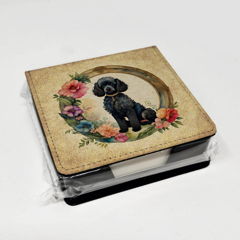Black Poodle and Flowers PU Leather Note Paper Holder