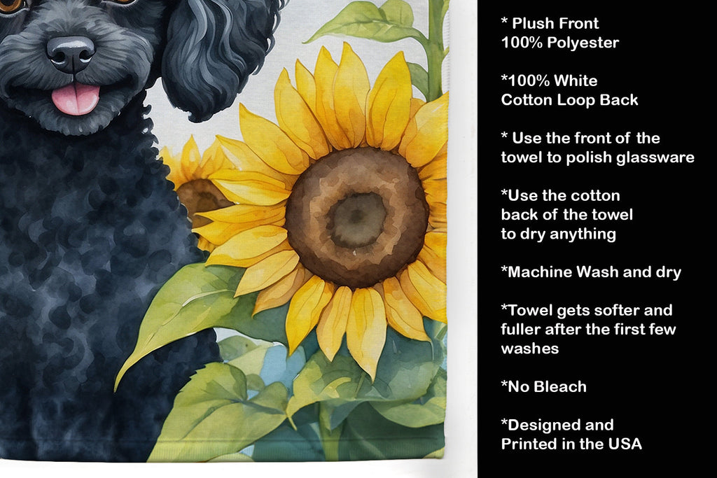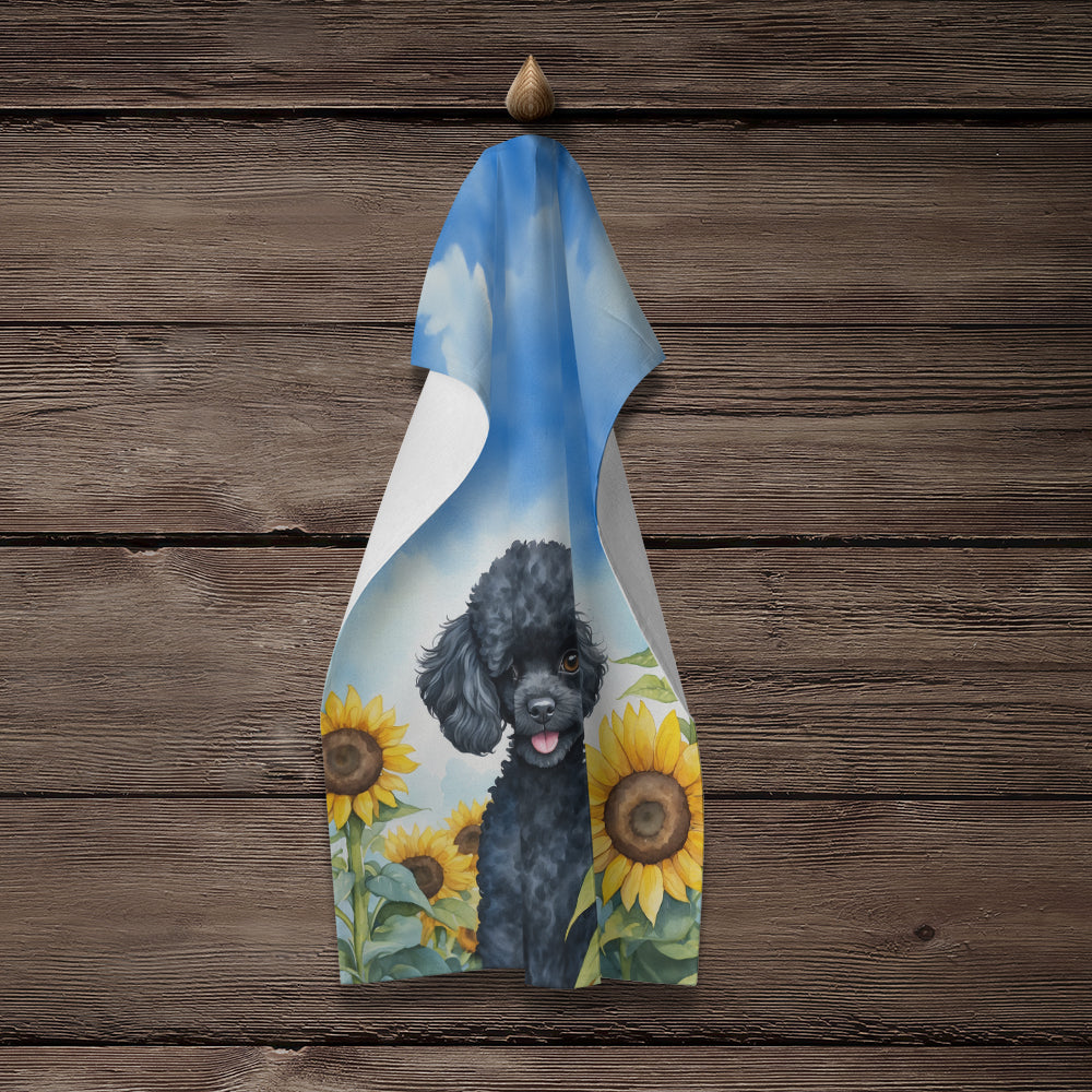 Black Poodle in Sunflowers Kitchen Towel