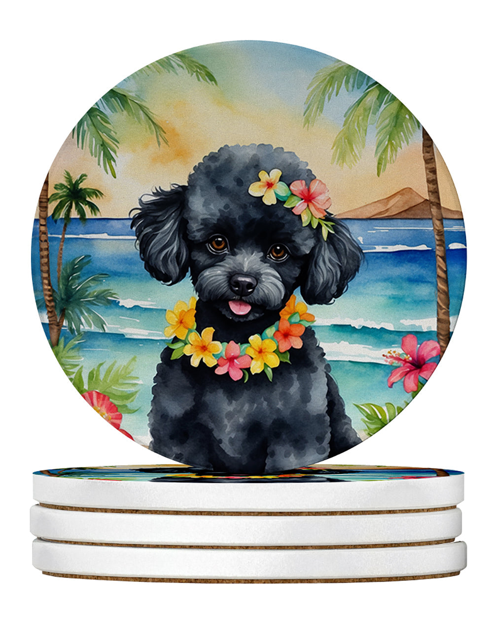 Black Poodle Luau Large Sandstone Coasters Pack of 4