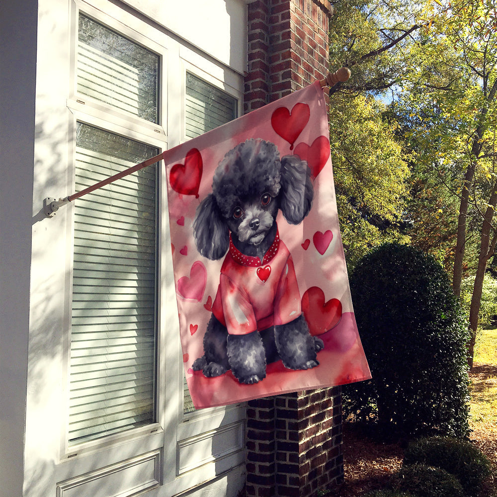 Shown here is the Black Poodle My Valentine House Flag from Caroline's Treasures featuring artwork of a Poodle in a Valentine's Day design. The detailed illustration and vibrant colors make it a standout accent for your home. Celebrate love and heartfelt connections with our My Valentine Collection. Featuring romantic and sweet designs that honor meaningful bonds, this collection brings warm, loving style to home d�cor and thoughtful gifts for your special someone. Presenting our Heavy Duty Polyester House Size Decorative Sleeve Pole Flag, a vibrant addition to enhance the aesthetic appeal of your home. This large decorative flag, measuring approximately 28 x 40 inches, offers ample coverage and visibility. Each flag is meticulously sewn and made individually, ensuring a unique piece that may slightly vary in size. It's a sleeve pole flag, designed to fit a standard decorative flag pole effortlessly. Please note that the flag pole and bracket are not included and should be purchased separately. What sets our flag apart is its dual-sided print. The design is mirrored on both sides of the fabric, allowing for uniform visibility regardless of the angle. Printed in full color, our flag showcases vibrant hues that truly stand out. To ensure lasting vibrancy and durability, the dyes are heat-set into the fabric. This ensures your flag remains bright and captivating through various weather conditions. Elevate the look of your home with our Heavy Duty Polyester House Size Decorative Sleeve Pole Flag! Poodles are highly intelligent dogs known for their elegance and versatility. Available in standard, miniature, and toy sizes, this breed is admired for its trainability and loyalty. Perfect for: Front porches, gardens, yards, patios, Valentine's Day decorating, Dogs-themed homes, or year-round display for Poodle enthusiasts Makes a heartfelt gift for: Poodle owners, Dogs lovers, Valentine's Day gifts, pet parents, friends who adore their Poodle, or anyone celebrating Dogs.