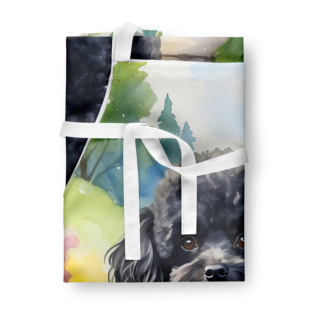 Shown here is the Black Poodle Spring Path Apron from Caroline's Treasures featuring artwork of a Poodle in a Spring design. The detailed illustration and vibrant colors make it a standout accent that celebrates both seasonal style for you home. Step into fresh seasonal style with our Spring Garden Path Collection. Featuring nature-inspired designs that evoke blooming gardens and soft greenery, this collection brings cheerful charm and uplifting décor to your home and thoughtful seasonal gifts. Elevate your cooking, baking, and grilling experiences with our versatile Kitchen or BBQ Apron. This Bib Style apron isn't just limited to culinary activities - it also serves as an excellent baking apron, artist apron, server apron, gardening apron, or even a dog grooming apron. The apron showcases vibrant full-color artwork contributed by one of our talented artists, bringing a dash of style to your daily tasks. With dimensions of approximately 27"W x 30"H, it provides ample coverage to protect your clothing from spills and splashes. Our apron is meticulously crafted from 100% Ultra Spun Polyester, known for its durability and lightweight nature. The apron comes with white tie straps, ensuring a comfortable and adjustable fit for all. It's a perfect choice for kitchen apron enthusiasts, whether you are a woman or a man. Designed for easy maintenance, this apron is fully machine washable. The quick-drying polyester material actively reduces staining, keeping your apron looking fresh and new for longer. Our beautifully designed apron isn't just a functional kitchen accessory - it's a fashion statement in the culinary world! Poodles are highly intelligent dogs known for their elegance and versatility. Available in standard, miniature, and toy sizes, this breed is admired for its trainability and loyalty. Makes a heartfelt gift for: Poodle owners, Dogs lovers, gifts, pet parents, friends who adore their Poodle, or anyone celebrating Dogs.