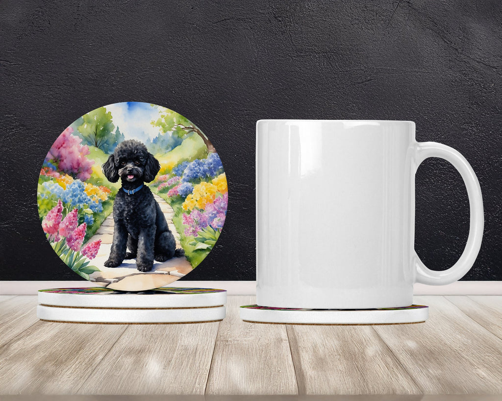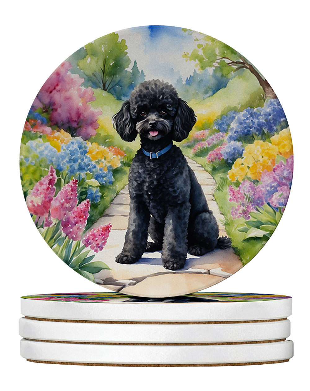 Shown here is the Black Poodle Spring Path Large Sandstone Coasters Pack of 4 from Caroline's Treasures featuring artwork of a Poodle in a Everyday design. The detailed illustration and vibrant colors make it a standout accent that celebrates both seasonal style and love for the subject. Step into fresh seasonal style with our Spring Garden Path Collection. Featuring nature-inspired designs that evoke blooming gardens and soft greenery, this collection brings cheerful charm and uplifting décor to your home and thoughtful seasonal gifts. Spring celebrates renewal, fresh color, and a sense of new energy. Seasonal décor adds a light, uplifting feel that reflects the optimism of the season. Introducing Caroline's Treasures Large Sandstone Coasters Pack of 4, the perfect addition to your home decor. Each coaster measures nearly 4 inches and is made from absorbent sandstone with a cork backing. Designed and printed in the United States, these coasters feature artwork from Caroline's Treasures' talented artists. Protect your countertops and tables from hot and cold drink condensation with these absorbent coasters. They efficiently absorb moisture, ensuring your surfaces stay dry and clean. Choose from a wide range of designs to update and enhance your decor or give them as a thoughtful gift for any occasion. Cleaning is a breeze—simply wipe the coaster with a damp towel to remove any spills or stains. Each set comes in a brown gift box, making it ready to be wrapped for that special person in your life. These absorbent sandstone coasters also make an excellent housewarming gift, providing both practicality and style. Celebrate birthdays, Mother's Day, Father's Day, Thanksgiving, Christmas, Teacher's Appreciation Day, or simply show someone you care with these versatile and charming coasters. Caroline's Treasures Large Sandstone Coasters Pack of 4 is the perfect happy gift for any occasion. Perfect for: Coffee tables, dining tables, and entertaining spaces, seasonal home decorating and gatherings, Dogs-themed homes, or year-round use for Poodle enthusiasts. Poodles are highly intelligent dogs known for their elegance and versatility. Available in standard, miniature, and toy sizes, this breed is admired for its trainability and loyalty. Makes a heartfelt gift for: Poodle owners, Dogs lovers, Everyday gifts, pet parents, friends who adore their Poodle, or anyone celebrating Dogs.