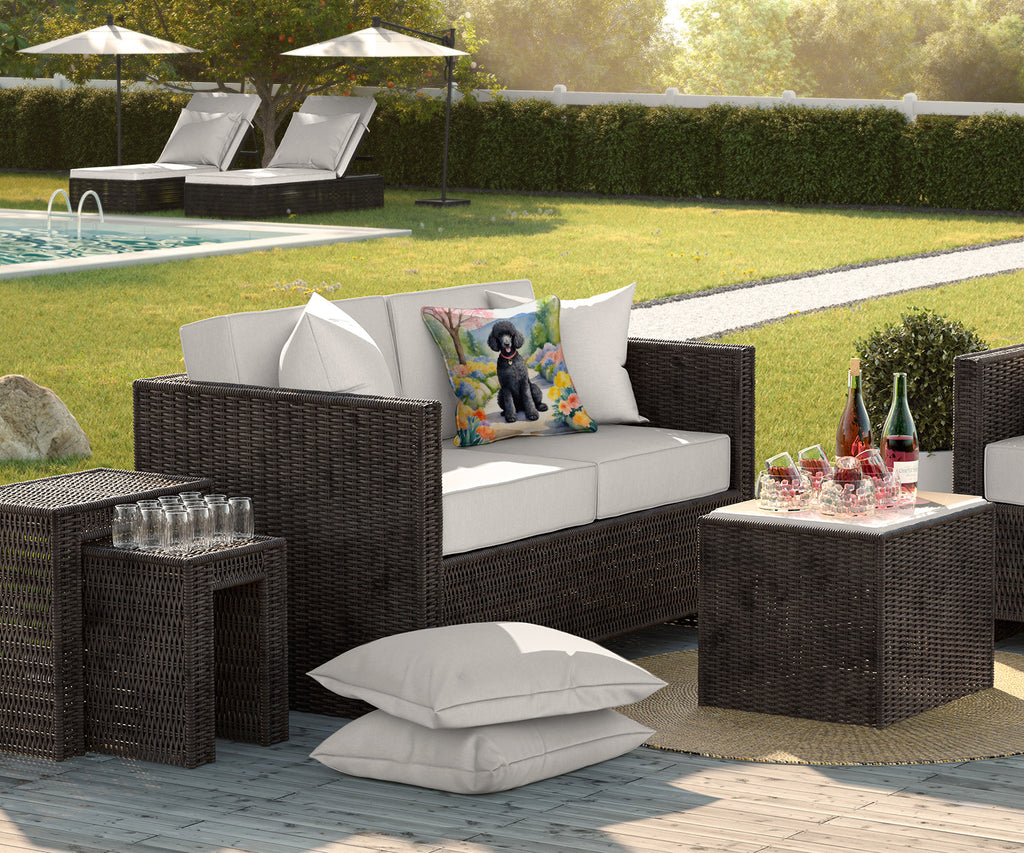 Shown here is the Black Poodle Spring Path Throw Pillow from Caroline's Treasures featuring artwork of a Poodle in a Spring design. The detailed illustration and vibrant colors make it a standout accent that celebrates both seasonal style for you home. Step into fresh seasonal style with our Spring Garden Path Collection. Featuring nature-inspired designs that evoke blooming gardens and soft greenery, this collection brings cheerful charm and uplifting décor to your home and thoughtful seasonal gifts. Revitalize your outdoor or indoor living space with Caroline's Treasures 18x18 Fabric Decorative Pillow. With a generously sized dimension of approximately 18 inches by 18 inches, this pillow makes a comfortable and aesthetic addition to any seating area. Made from a unique, water-resistant material developed by Caroline's Treasures, the pillow sham is 100% polyester fabric that's durable and ready to weather any condition. Its vibrant, full-color artwork will not fade over time as it is dyed with color-fast dyes. Whether you place it on your patio furniture, porch, veranda, or indoor couch, its soft canvas fabric ensures a cozy experience. The pillow is handcrafted in the United States, featuring a sham created from three pieces of fabric and a polyester insert for enduring shape and overstuffed comfort. Despite being robustly built to endure the outdoors, it is as soft and snug as your favorite indoor cushions. Please note, as all our pillows are handmade, sizes may vary slightly, adding to the charm of this unique decorative item. Poodles are highly intelligent dogs known for their elegance and versatility. Available in standard, miniature, and toy sizes, this breed is admired for its trainability and loyalty. Perfect for: Living rooms, bedrooms, couches, and chairs, seasonal or everyday decorating, Dogs-themed homes, or year-round display for Poodle fans. Makes a heartfelt gift for: Poodle owners, Dogs lovers, gifts, pet parents, friends who adore their Poodle, or anyone celebrating Dogs.