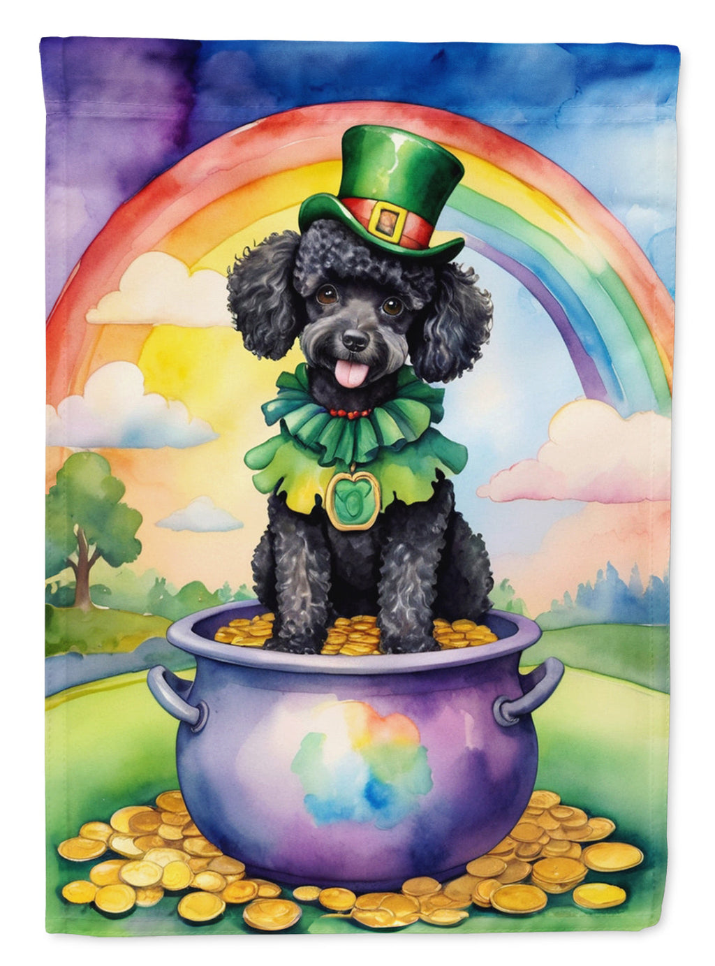 Black Poodle St. Patrick’s Day Garden Flag – Dog with Pot of Gold & Rainbow Yard Decor