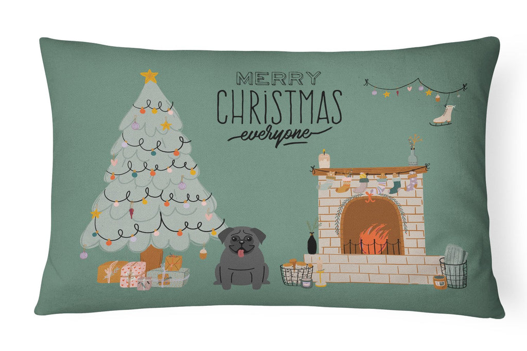 Black Pug Christmas Everyone Canvas Fabric Decorative Pillow CK7569PW1216