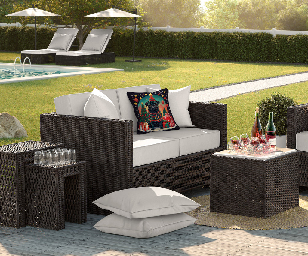 Shown here is the Black Pug Christmas Throw Pillow from Caroline's Treasures featuring artwork of a Pug in a Christmas design. The detailed illustration and vibrant colors make it a standout accent for your home. Step into a season of wonder with our Enchanted Christmas Collection. Featuring whimsical and magical designs that capture the spirit of the holidays, this collection brings festive charm and joyful personality to seasonal d�cor and thoughtful gifts for those you hold dear. Revitalize your outdoor or indoor living space with Caroline's Treasures 18x18 Fabric Decorative Pillow. With a generously sized dimension of approximately 18 inches by 18 inches, this pillow makes a comfortable and aesthetic addition to any seating area. Made from a unique, water-resistant material developed by Caroline's Treasures, the pillow sham is 100% polyester fabric that's durable and ready to weather any condition. Its vibrant, full-color artwork will not fade over time as it is dyed with color-fast dyes. Whether you place it on your patio furniture, porch, veranda, or indoor couch, its soft canvas fabric ensures a cozy experience. The pillow is handcrafted in the United States, featuring a sham created from three pieces of fabric and a polyester insert for enduring shape and overstuffed comfort. Despite being robustly built to endure the outdoors, it is as soft and snug as your favorite indoor cushions. Please note, as all our pillows are handmade, sizes may vary slightly, adding to the charm of this unique decorative item. Pugs are charming companion dogs known for their expressive faces and affectionate personality. This breed is loved for its loyalty, playful nature, and strong bond with family. Perfect for: Living rooms, bedrooms, couches, and chairs, seasonal or everyday decorating, Dogs-themed homes, or year-round display for Pug fans. Makes a heartfelt gift for: Pug owners, Dogs lovers, Christmas gifts, pet parents, friends who adore their Pug, or anyone celebrating Dogs.