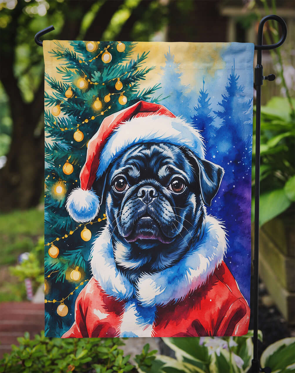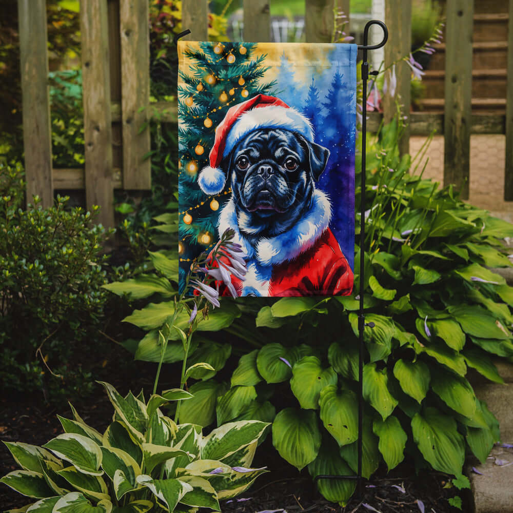 Shown here is the Black Pug Christmas Garden Flag from Caroline's Treasures featuring artwork of a Pug in a Christmas design. The detailed illustration and vibrant colors make it a standout accent that celebrates both seasonal style and love for the subject. Get festive with furry friends in our Christmas Santa Dogs Collection. Featuring joyful holiday designs that pair beloved pups with classic Santa spirit, this collection brings heart-warming charm and cheerful personality to seasonal décor and thoughtful gifts for dog lovers. Christmas is a time for tradition, warmth, and meaningful moments shared with family and friends. Holiday décor helps create a festive atmosphere that celebrates joy, togetherness, and memories made year after year. Enhance the beauty of your garden, patio, or yard with Caroline's Treasures Decorative Garden Flag, proudly made in the USA. Crafted from two pieces of thick, double-sided polyester fabric, this 2-ply garden flag is designed to withstand various weather conditions, making it water-resistant and weatherproof. Featuring correctly readable words on both sides, this garden flag offers a delightful visual experience from any angle. With its heavier weight, it stands out among other garden flags, ensuring stability and durability even in wind, rain, and snow. Measuring approximately 11 1/4 inches by 15 1/2 inches, this flag allows you to personalize your outdoor decor. It comes with a 1 1/2-inch sleeve sewn in, allowing easy attachment to any standard garden flag stand or garden size porch hanger (sold separately). Make a statement in your outdoor space with Caroline's Treasures Decorative Garden Flag, a vibrant and high-quality flag that adds color and personality to your surroundings. Proudly made in the USA, it's a symbol of quality craftsmanship and attention to detail. Perfect for: Front porches, gardens, yards, patios, Christmas decorating, Dogs-themed homes, or year-round display for Pug enthusiasts Pugs are charming companion dogs known for their expressive faces and affectionate personality. This breed is loved for its loyalty, playful nature, and strong bond with family. Makes a heartfelt gift for: Pug owners, Dogs lovers, Christmas gifts, pet parents, friends who adore their Pug, or anyone celebrating Dogs.