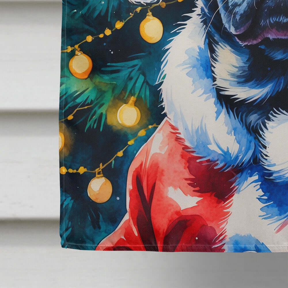 Black Pug Christmas House Flag