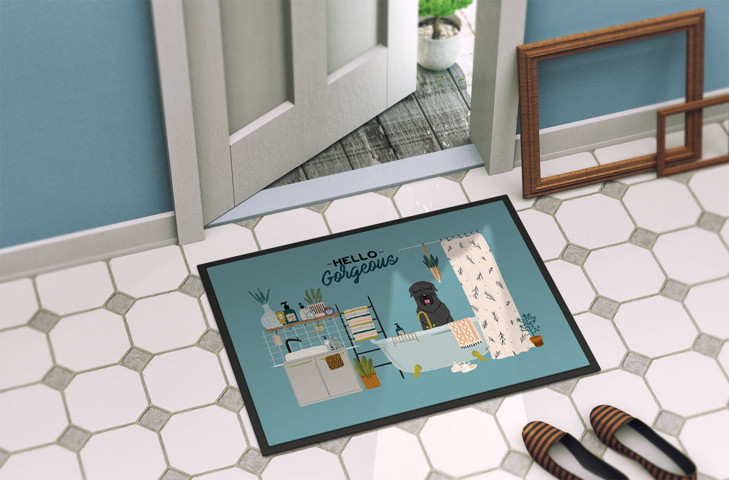 Shown here is the Black Russian Terrier in Bathtub Doormat from Caroline's Treasures featuring artwork of a Black Russian Terrier in a Everyday design. The detailed illustration and vibrant colors make it a standout accent for your home. Welcome your guests in style with our Artwork Door Mat, designed to withstand almost any weather condition. This mat, measuring approximately 24 by 36 inches, is held together by durable black binding tape. Its top layer, composed of polyester felt, is dyed with the eye-catching image you see on the mat. A few layers below provide the mat with stability, while its rubber bottom is stamped to help prevent slipping and ensures safety. Our mat works wonderfully as both an indoor or outdoor door mat. For cleaning, simply hose it off with water or use a power washer - no need for any cleaner that produces suds. Avoid scrubbing with a brush, instead, opt for the vacuum on floor setting. Designed manufactured and printed in the USA, this mat is a perfect addition to your porch, outdoor kitchen, entryway, or any indoor space. Its unique design makes it a charming decorative rug that greets your guests and adds a stylish touch to your home decor. Black Russian Terriers are powerful working dogs known for their confidence and protective instincts. This intelligent breed is respected for its loyalty and calm, steady temperament. Perfect for: Front doors, entryways, and porches, everyday home d�cor, Dogs-themed homes, or year-round display for Black Russian Terrier lovers. Makes a heartfelt gift for: Black Russian Terrier owners, Dogs lovers, Everyday gifts, pet parents, friends who adore their Black Russian Terrier, or anyone celebrating Dogs.