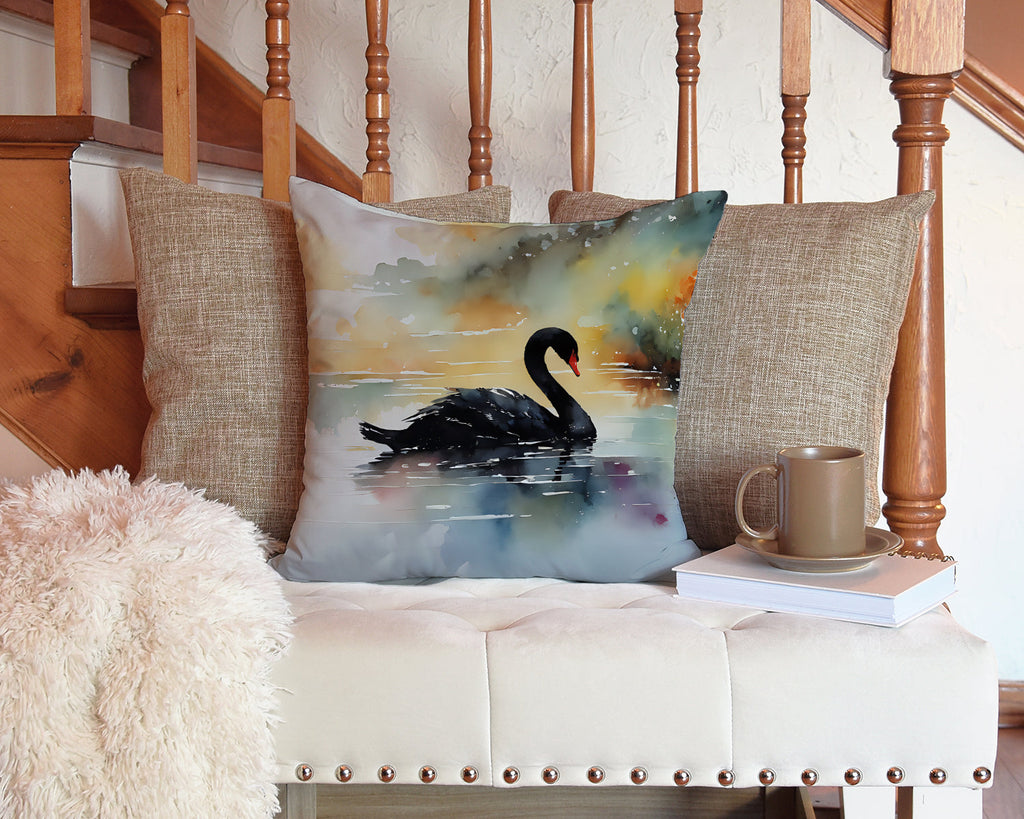 Shown here is the Black Swan Throw Pillow from Caroline's Treasures featuring artwork of a Black Swan in a Everyday design. The detailed illustration and vibrant colors make it a standout accent for your home. Fill your home with the joyful song of nature with our Birds Birds Birds Collection. Featuring vibrant and whimsical bird-inspired designs, this collection brings cheerful charm and uplifting style to home décor and thoughtful gifts for bird lovers and nature enthusiasts. Add a touch of vibrancy and comfort to your outdoor seating with Caroline's Treasures Fabric Decorative Pillow. Measuring approximately 14 inches by 14 inches, this outdoor pillow is crafted to elevate the appeal of your patio furniture, infusing it with vivid color and artistic flair. The pillow includes a 100% Polyester Fabric sham filled with a quality pillow form to provide superior comfort. Innovatively made from our brand new material, specifically woven for its water resistance, this pillow is designed for durability. The soft canvas fabric offers versatility in use, fit for your indoor couch or your outdoor patio, porch, or veranda. The fabric is dyed with colorfast dyes built for resilience against weather conditions, ensuring the pillow retains its beauty over time. Constructed by sewing three fabric pieces to create a sham, the polyester insert is then nestled inside to form the pillow, resulting in an overstuffed pillow that maintains its shape. Both the sham and the pillow insert are proudly made in the United States. As the pillows are handcrafted, there may be minor variations in size, further enhancing their unique charm. Experience comfort in style with Caroline's Treasures Fabric Decorative Pillow. Black swans display deep black feathers with graceful necks. Their appearance feels elegant and dramatic. Perfect for: Living rooms, bedrooms, couches, and chairs, seasonal or everyday decorating, Birds-themed homes, or year-round display for Black Swan fans. Makes a heartfelt gift for: Black Swan owners, Birds lovers, Everyday gifts, pet parents, friends who adore their Black Swan, or anyone celebrating Birds.