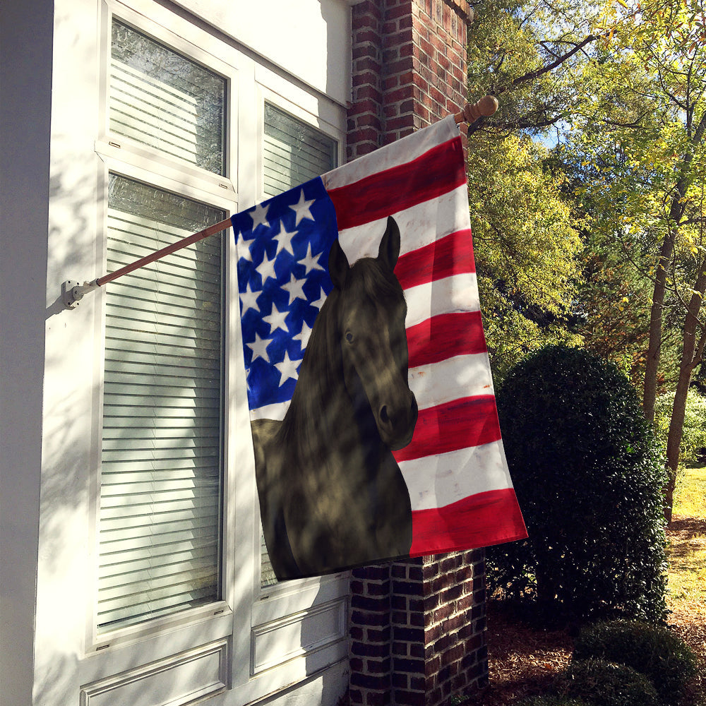 Shown here is the Black Tennessee Walking Horse American House Flag from Caroline's Treasures featuring artwork of a Tennessee Walking Horse in a design. The detailed illustration and vibrant colors make it a standout accent that celebrates both seasonal style and love for the subject. Patriotic celebrations honor national pride, tradition, and the spirit of togetherness. Red, white, and blue décor adds a classic, meaningful touch to homes during summer holidays and beyond. Presenting our Heavy Duty Polyester House Size Decorative Sleeve Pole Flag, a vibrant addition to enhance the aesthetic appeal of your home. This large decorative flag, measuring approximately 28 x 40 inches, offers ample coverage and visibility. Each flag is meticulously sewn and made individually, ensuring a unique piece that may slightly vary in size. It's a sleeve pole flag, designed to fit a standard decorative flag pole effortlessly. Please note that the flag pole and bracket are not included and should be purchased separately. What sets our flag apart is its dual-sided print. The design is mirrored on both sides of the fabric, allowing for uniform visibility regardless of the angle. Printed in full color, our flag showcases vibrant hues that truly stand out. To ensure lasting vibrancy and durability, the dyes are heat-set into the fabric. This ensures your flag remains bright and captivating through various weather conditions. Elevate the look of your home with our Heavy Duty Polyester House Size Decorative Sleeve Pole Flag! Perfect for: Front porches, gardens, yards, patios, 4th of July decorating, Farm Animals-themed homes, or year-round display for Tennessee Walking Horse enthusiasts Tennessee Walking Horses feature smooth gaits and balanced builds. Their appearance reflects grace and strength. Makes a heartfelt gift for: Tennessee Walking Horse owners, Farm Animals lovers, 4th of July gifts, pet parents, friends who adore their Tennessee Walking Horse, or anyone celebrating Farm Animals.