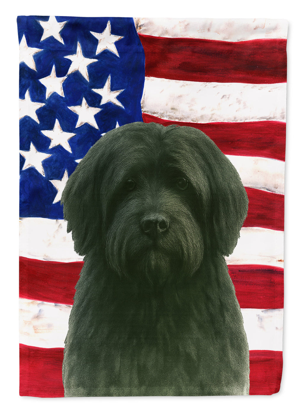 Black Tibetan Spaniel American Flag Garden Flag