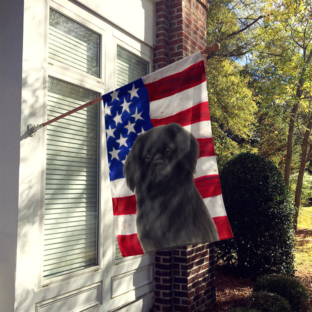 Black Tibetan Spaniel American Flag House Flag