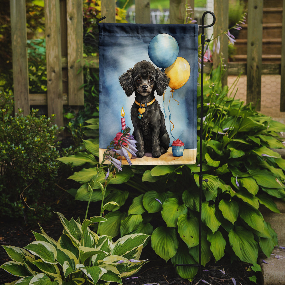 Shown here is the Black Toy Poodle Happy Birthday Garden Flag from Caroline's Treasures featuring artwork of a Poodle in a Birthday design. The detailed illustration and vibrant colors make it a standout accent that celebrates both seasonal style and love for the subject. Celebrate another wonderful year with our Happy Birthday Collection. Featuring cheerful designs that capture the joy and spirit of birthdays, this collection brings bright personality and thoughtful gifts that help make someone’s special day even more memorable. Birthdays celebrate individuality, milestones, and meaningful connections. Personalized décor and gifts help make the day feel special while creating memories that last beyond the celebration. Enhance the beauty of your garden, patio, or yard with Caroline's Treasures Decorative Garden Flag, proudly made in the USA. Crafted from two pieces of thick, double-sided polyester fabric, this 2-ply garden flag is designed to withstand various weather conditions, making it water-resistant and weatherproof. Featuring correctly readable words on both sides, this garden flag offers a delightful visual experience from any angle. With its heavier weight, it stands out among other garden flags, ensuring stability and durability even in wind, rain, and snow. Measuring approximately 11 1/4 inches by 15 1/2 inches, this flag allows you to personalize your outdoor decor. It comes with a 1 1/2-inch sleeve sewn in, allowing easy attachment to any standard garden flag stand or garden size porch hanger (sold separately). Make a statement in your outdoor space with Caroline's Treasures Decorative Garden Flag, a vibrant and high-quality flag that adds color and personality to your surroundings. Proudly made in the USA, it's a symbol of quality craftsmanship and attention to detail. Perfect for: Front porches, gardens, yards, patios, Birthday decorating, Dogs-themed homes, or year-round display for Poodle enthusiasts Poodles are highly intelligent dogs known for their elegance and versatility. Available in standard, miniature, and toy sizes, this breed is admired for its trainability and loyalty. Makes a heartfelt gift for: Poodle owners, Dogs lovers, Birthday gifts, pet parents, friends who adore their Poodle, or anyone celebrating Dogs.
