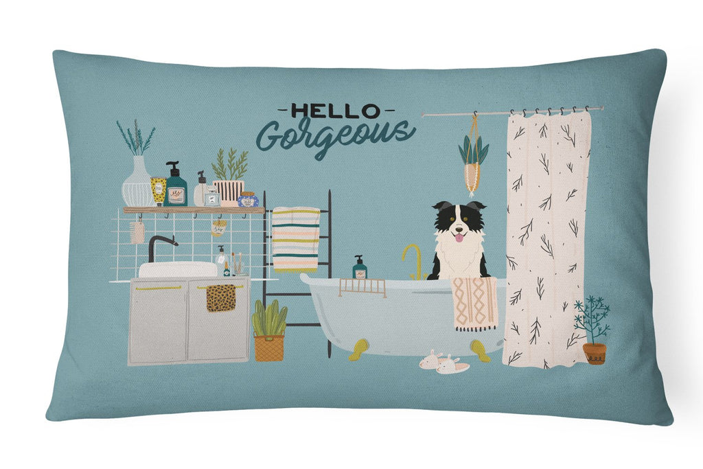 Black White Border Collie in Bathtub Canvas Fabric Decorative Pillow CK7540PW1216