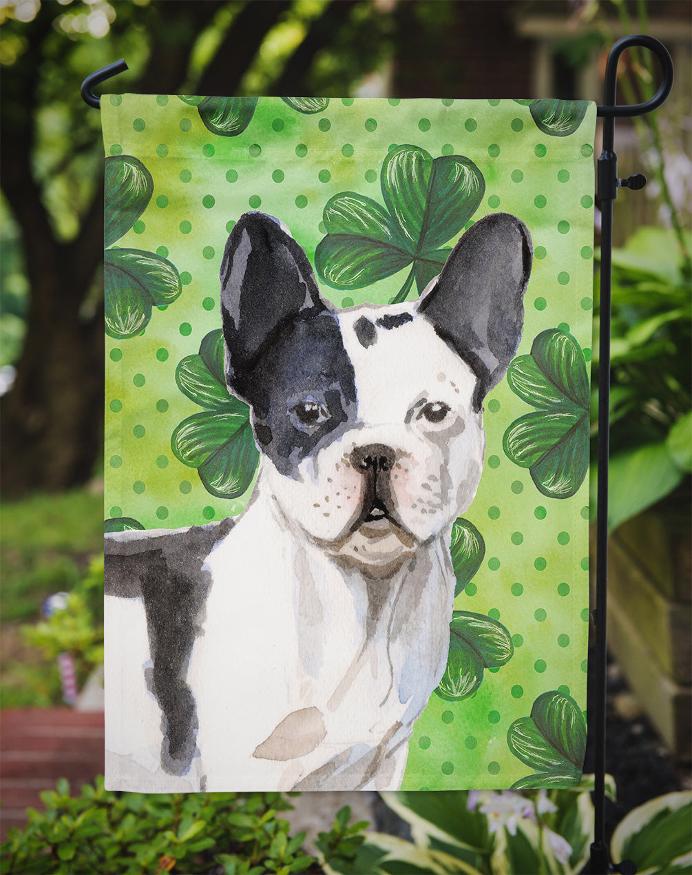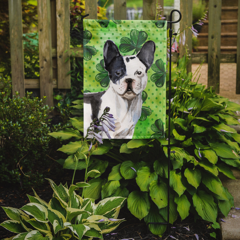 Decorate your space with our St Patrick's Day French Bulldog artwork on a Garden Flag. Enhance the beauty of your garden, patio, or yard with Caroline's Treasures Decorative Garden Flag, proudly made in the USA. Crafted from two pieces of thick, double-sided polyester fabric, this 2-ply garden flag is designed to withstand various weather conditions, making it water-resistant and weatherproof. Featuring correctly readable words on both sides, this garden flag offers a delightful visual experience from any angle. With its heavier weight, it stands out among other garden flags, ensuring stability and durability even in wind, rain, and snow. Measuring approximately 11 1/4 inches by 15 1/2 inches, this flag allows you to personalize your outdoor decor. It comes with a 1 1/2-inch sleeve sewn in, allowing easy attachment to any standard garden flag stand or garden size porch hanger (sold separately). Make a statement in your outdoor space with Caroline's Treasures Decorative Garden Flag, a vibrant and high-quality flag that adds color and personality to your surroundings. Proudly made in the USA, it's a symbol of quality craftsmanship and attention to detail.
