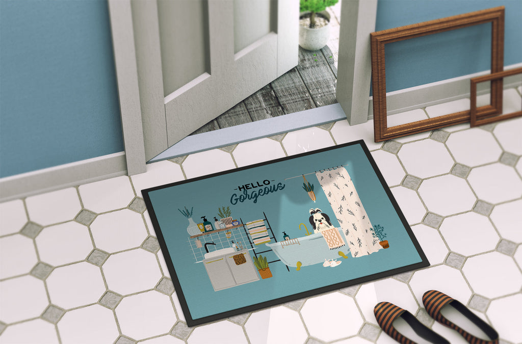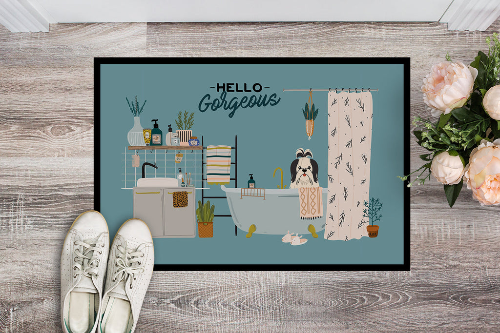 Shown here is the Black White Shih Tzu in Bathtub Doormat from Caroline's Treasures featuring artwork of a Shih Tzu in a Everyday design. The detailed illustration and vibrant colors make it a standout accent for your home. Welcome your guests in style with our Artwork Door Mat, designed to withstand almost any weather condition. This mat, measuring approximately 24 by 36 inches, is held together by durable black binding tape. Its top layer, composed of polyester felt, is dyed with the eye-catching image you see on the mat. A few layers below provide the mat with stability, while its rubber bottom is stamped to help prevent slipping and ensures safety. Our mat works wonderfully as both an indoor or outdoor door mat. For cleaning, simply hose it off with water or use a power washer - no need for any cleaner that produces suds. Avoid scrubbing with a brush, instead, opt for the vacuum on floor setting. Designed manufactured and printed in the USA, this mat is a perfect addition to your porch, outdoor kitchen, entryway, or any indoor space. Its unique design makes it a charming decorative rug that greets your guests and adds a stylish touch to your home decor. Shih Tzus are affectionate companion dogs known for their friendly temperament and flowing coats. This ancient breed is cherished for its loyalty, gentle nature, and close bond with family. Perfect for: Front doors, entryways, and porches, everyday home d�cor, Dogs-themed homes, or year-round display for Shih Tzu lovers. Makes a heartfelt gift for: Shih Tzu owners, Dogs lovers, Everyday gifts, pet parents, friends who adore their Shih Tzu, or anyone celebrating Dogs.