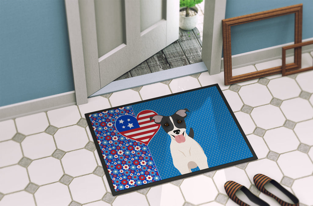 Shown here is the Black White Smooth Jack Russell Terrier USA American Doormat from Caroline's Treasures featuring artwork of a Jack Russell Terrier in a 4th of July design. The detailed illustration and vibrant colors make it a standout accent that celebrates both seasonal style for your homet. Celebrate love for country and home with our USA Love America Collection. Featuring patriotic designs inspired by red, white, and blue traditions, this collection brings heartfelt American spirit and timeless style to home d�cor and meaningful gifts. Welcome your guests in style with our Artwork Door Mat, designed to withstand almost any weather condition. This mat, measuring approximately 24 by 36 inches, is held together by durable black binding tape. Its top layer, composed of polyester felt, is dyed with the eye-catching image you see on the mat. A few layers below provide the mat with stability, while its rubber bottom is stamped to help prevent slipping and ensures safety. Our mat works wonderfully as both an indoor or outdoor door mat. For cleaning, simply hose it off with water or use a power washer - no need for any cleaner that produces suds. Avoid scrubbing with a brush, instead, opt for the vacuum on floor setting. Designed manufactured and printed in the USA, this mat is a perfect addition to your porch, outdoor kitchen, entryway, or any indoor space. Its unique design makes it a charming decorative rug that greets your guests and adds a stylish touch to your home decor. Jack Russell Terriers are energetic and intelligent dogs known for their bold personality and high drive. This lively terrier breed is admired for its agility, confidence, and enthusiasm. Perfect for: Front doors, entryways, and porches, everyday home d�cor, Dogs-themed homes, or year-round display for Jack Russell Terrier lovers. Makes a heartfelt gift for: Jack Russell Terrier owners, Dogs lovers, 4th of July gifts, pet parents, friends who adore their Jack Russell Terrier, or anyone celebrating Dogs.