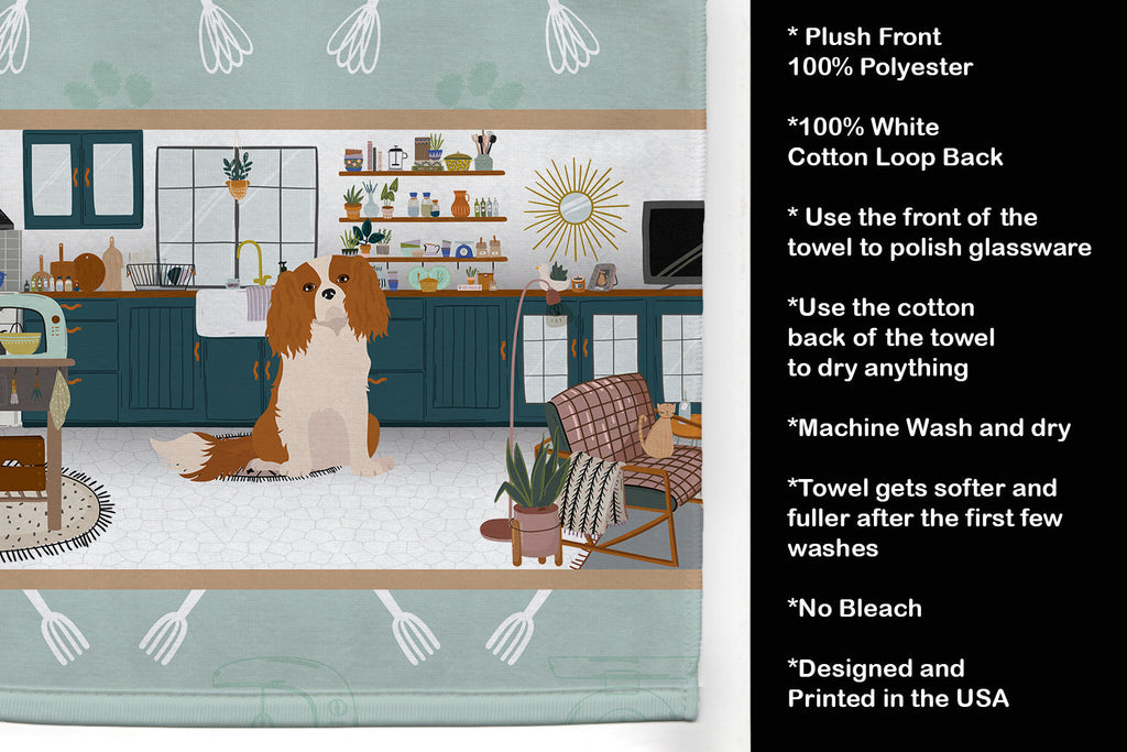 Shown here is the Blenheim Cavalier Spaniel in the Kitchen Kitchen Towel from Caroline's Treasures featuring artwork of a Cavalier King Charles Spaniel in a Everyday design. The detailed illustration and vibrant colors make it a standout accent for your home. Bring cozy everyday charm to your sink or powder room with a plush velour towel featuring original watercolor artwork. The front is a soft, color-rich minky polyester that polishes glassware to a brilliant shine; the back is 100% white cotton terry loop for quick absorbency on hands, dishes, and counters. Artwork is dyed into the fibers for lasting color that won�t crack or peel. Finished edges keep the shape wash after wash. Size: 15" x 25". Machine wash; tumble dry low. Designed and printed in the USA. Cavalier King Charles Spaniels, often called Cavaliers, are affectionate companion dogs known for their gentle temperament. This breed is cherished for its loving nature, expressive eyes, and devotion to family. Perfect for: Kitchen counters, ovens, and towel bars, everyday drying and cleanup, Dogs-themed kitchens, or year-round use for Cavalier King Charles Spaniel lovers. Makes a heartfelt gift for: Cavalier King Charles Spaniel owners, Dogs lovers, Everyday gifts, pet parents, friends who adore their Cavalier King Charles Spaniel, or anyone celebrating Dogs.