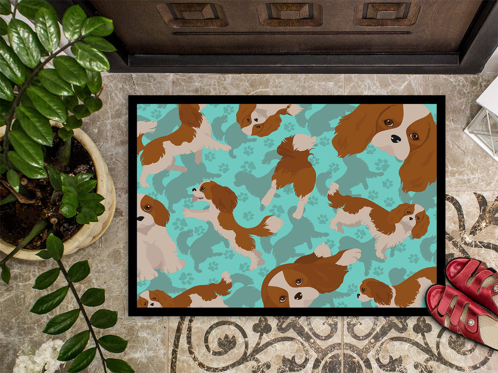 Shown here is the Blenheim Cavalier Spaniel Doormat from Caroline's Treasures featuring artwork of a Cavalier King Charles Spaniel in a Everyday design. The detailed illustration and vibrant colors make it a standout accent for your home. Celebrate classic canine charm with our Dogs on Blue Collection. Featuring beloved breeds showcased against rich blue tones, this collection brings playful personality and eye-catching style to home d�cor and meaningful gifts. Welcome your guests in style with our Artwork Door Mat, designed to withstand almost any weather condition. This mat, measuring approximately 24 by 36 inches, is held together by durable black binding tape. Its top layer, composed of polyester felt, is dyed with the eye-catching image you see on the mat. A few layers below provide the mat with stability, while its rubber bottom is stamped to help prevent slipping and ensures safety. Our mat works wonderfully as both an indoor or outdoor door mat. For cleaning, simply hose it off with water or use a power washer - no need for any cleaner that produces suds. Avoid scrubbing with a brush, instead, opt for the vacuum on floor setting. Designed manufactured and printed in the USA, this mat is a perfect addition to your porch, outdoor kitchen, entryway, or any indoor space. Its unique design makes it a charming decorative rug that greets your guests and adds a stylish touch to your home decor. Cavalier King Charles Spaniels, often called Cavaliers, are affectionate companion dogs known for their gentle temperament. This breed is cherished for its loving nature, expressive eyes, and devotion to family. Perfect for: Front doors, entryways, and porches, everyday home d�cor, Dogs-themed homes, or year-round display for Cavalier King Charles Spaniel lovers. Makes a heartfelt gift for: Cavalier King Charles Spaniel owners, Dogs lovers, Everyday gifts, pet parents, friends who adore their Cavalier King Charles Spaniel, or anyone celebrating Dogs.