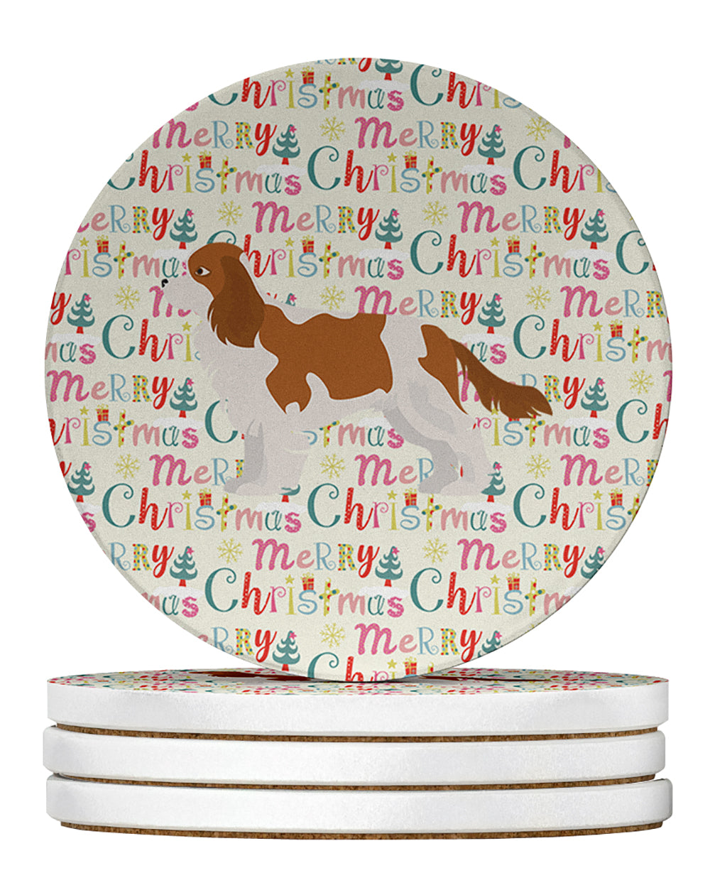 Shown here is the Blenheim Cavalier Spaniel Merry Christmas Large Sandstone Coasters Pack of 4 from Caroline's Treasures featuring artwork of a Cavalier King Charles Spaniel in a Everyday design. The detailed illustration and vibrant colors make it a standout accent for your home. Introducing Caroline's Treasures Large Sandstone Coasters Pack of 4, the perfect addition to your home decor. Each coaster measures nearly 4 inches and is made from absorbent sandstone with a cork backing. Designed and printed in the United States, these coasters feature artwork from Caroline's Treasures' talented artists. Protect your countertops and tables from hot and cold drink condensation with these absorbent coasters. They efficiently absorb moisture, ensuring your surfaces stay dry and clean. Choose from a wide range of designs to update and enhance your decor or give them as a thoughtful gift for any occasion. Cleaning is a breeze�simply wipe the coaster with a damp towel to remove any spills or stains. Each set comes in a brown gift box, making it ready to be wrapped for that special person in your life. These absorbent sandstone coasters also make an excellent housewarming gift, providing both practicality and style. Celebrate birthdays, Mother's Day, Father's Day, Thanksgiving, Christmas, Teacher's Appreciation Day, or simply show someone you care with these versatile and charming coasters. Caroline's Treasures Large Sandstone Coasters Pack of 4 is the perfect happy gift for any occasion. Cavalier King Charles Spaniels, often called Cavaliers, are affectionate companion dogs known for their gentle temperament. This breed is cherished for its loving nature, expressive eyes, and devotion to family. Perfect for: Coffee tables, dining tables, and entertaining spaces, seasonal home decorating and gatherings, Dogs-themed homes, or year-round use for Cavalier King Charles Spaniel enthusiasts. Makes a heartfelt gift for: Cavalier King Charles Spaniel owners, Dogs lovers, Everyday gifts, pet parents, friends who adore their Cavalier King Charles Spaniel, or anyone celebrating Dogs.