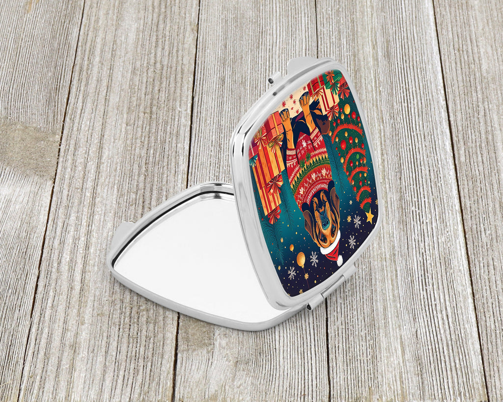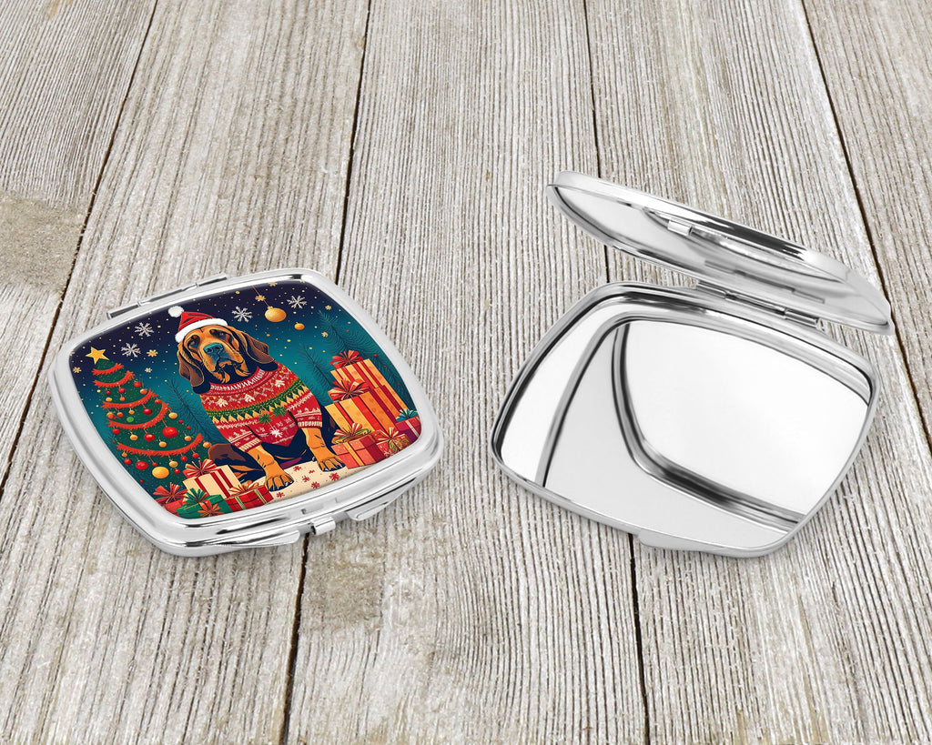 Shown here is the Bloodhound Christmas Compact Mirror from Caroline's Treasures featuring artwork of a Bloodhound in a Christmas design. The detailed illustration and vibrant colors make it a standout accent for your home. Step into a season of wonder with our Enchanted Christmas Collection. Featuring whimsical and magical designs that capture the spirit of the holidays, this collection brings festive charm and joyful personality to seasonal décor and thoughtful gifts for those you hold dear. Introducing our Square Compact Mirror, a blend of elegance, functionality, and compactness, perfect for on-the-go touch-ups. This Silvertone metal mirror, with dimensions of 2.75 inches x 3 inches x .3 inches, fits effortlessly into your purse, handbag, or pocket, ensuring that you can check your appearance anytime, anywhere. Our compact mirror stands out with its eye-catching artwork on the front, adding a dash of style to this practical accessory. It is more than just a mirror; it's a statement piece that reflects your personality and aesthetic. When opened, this compact reveals two mirrors inside, doubling your perspective for precise touch-ups. The Silvertone metal construction ensures durability while maintaining a lightweight feel, making it an ideal everyday carry item. Whether you're rushing to a meeting, prepping for a dinner date, or just need a quick check on your look, our Square Compact Mirror is your reliable companion. Experience the perfect blend of style and practicality with this must-have accessory. Bloodhounds are scent hounds renowned for their exceptional tracking ability and gentle personality. This breed is admired for its determination, loyalty, and calm demeanor. Purses, handbags, backpacks, and travel kits, everyday touch-ups and quick checks, Dogs-themed accessories, or year-round use for Bloodhound lovers. Makes a heartfelt gift for: Bloodhound owners, Dogs lovers, Christmas gifts, pet parents, friends who adore their Bloodhound, or anyone celebrating Dogs.
