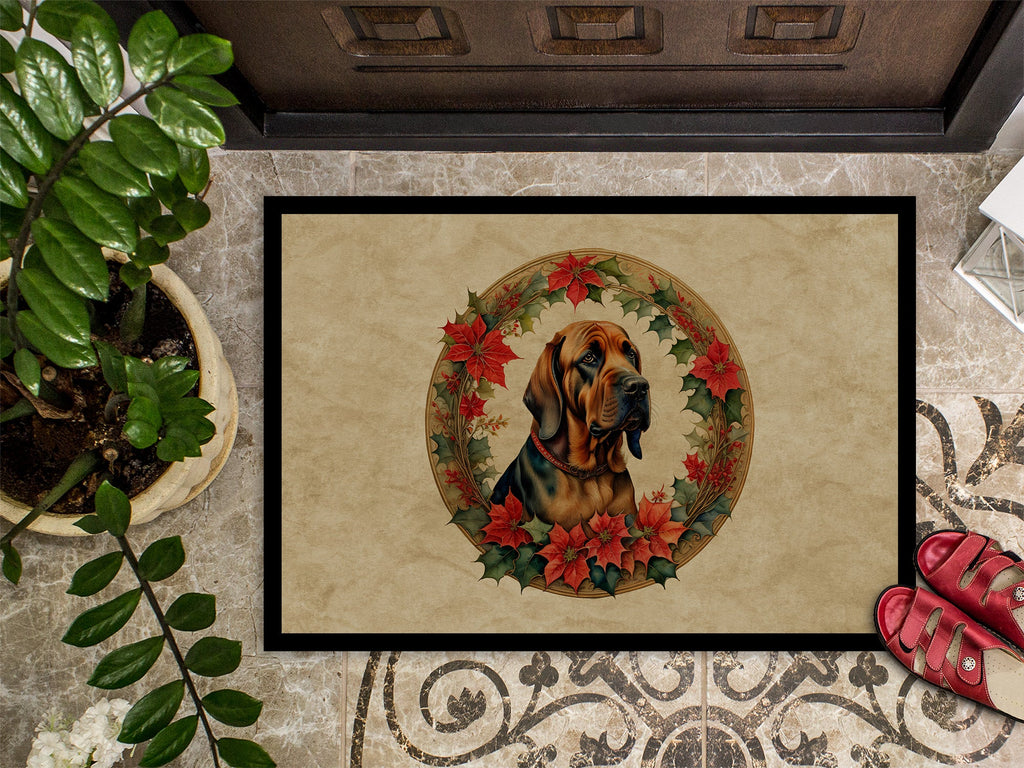 Shown here is the Bloodhound Christmas Flowers Doormat from Caroline's Treasures featuring artwork of a Bloodhound in a Christmas design. The detailed illustration and vibrant colors make it a standout accent for your home. Celebrate seasonal joy with the Dogs in Christmas Flower Frame Collection. Featuring festive floral frames paired with heartwarming canine designs, this collection brings cheerful holiday style and meaningful charm to your seasonal d�cor and thoughtful gifts for dog lovers. Welcome your guests in style with our Artwork Door Mat, designed to withstand almost any weather condition. This mat, measuring approximately 24 by 36 inches, is held together by durable black binding tape. Its top layer, composed of polyester felt, is dyed with the eye-catching image you see on the mat. A few layers below provide the mat with stability, while its rubber bottom is stamped to help prevent slipping and ensures safety. Our mat works wonderfully as both an indoor or outdoor door mat. For cleaning, simply hose it off with water or use a power washer - no need for any cleaner that produces suds. Avoid scrubbing with a brush, instead, opt for the vacuum on floor setting. Designed manufactured and printed in the USA, this mat is a perfect addition to your porch, outdoor kitchen, entryway, or any indoor space. Its unique design makes it a charming decorative rug that greets your guests and adds a stylish touch to your home decor. Bloodhounds are scent hounds renowned for their exceptional tracking ability and gentle personality. This breed is admired for its determination, loyalty, and calm demeanor. Perfect for: Front doors, entryways, and porches, everyday home d�cor, Dogs-themed homes, or year-round display for Bloodhound lovers. Makes a heartfelt gift for: Bloodhound owners, Dogs lovers, Christmas gifts, pet parents, friends who adore their Bloodhound, or anyone celebrating Dogs.