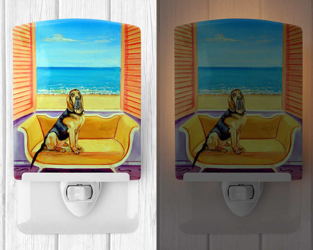 Decorate your space with our Bloodhound artwork on a Night Light. Introduce a splash of artistic flair and subtle illumination to your space with the Decorative Ceramic Night Light from Caroline's Treasures. Perfect for any room, this night light seamlessly blends functionality with an aesthetic appeal, offering a stylish solution to brighten up dark corners of your home or office. Boasting a six-inch high by four-inch wide ceramic tile at the front, it showcases vivid, full-color artwork from distinguished artists, transforming a simple utility into a vibrant art piece. The artwork is securely encased in a robust metal holder, ensuring durability and longevity. Two screws are provided to firmly affix the tile into the holder. The holder extends three inches deep, housing an included bulb that emits a soft, welcoming glow. This product meets all safety standards, as evidenced by its UL approval. Proudly made in the United States from imported components, this Decorative Ceramic Night Light is not just a functional device; it's a statement piece that enhances the ambiance of your surroundings.