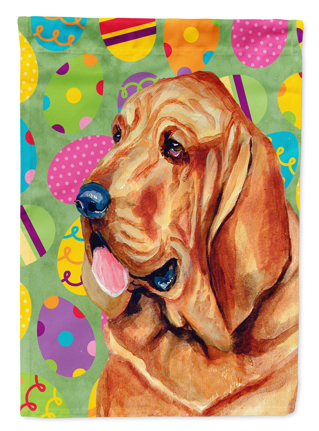 Decorate your space with our Easter Bloodhound artwork on a Garden Flag. Enhance the beauty of your garden, patio, or yard with Caroline's Treasures Decorative Garden Flag, proudly made in the USA. Crafted from two pieces of thick, double-sided polyester fabric, this 2-ply garden flag is designed to withstand various weather conditions, making it water-resistant and weatherproof. Featuring correctly readable words on both sides, this garden flag offers a delightful visual experience from any angle. With its heavier weight, it stands out among other garden flags, ensuring stability and durability even in wind, rain, and snow. Measuring approximately 11 1/4 inches by 15 1/2 inches, this flag allows you to personalize your outdoor decor. It comes with a 1 1/2-inch sleeve sewn in, allowing easy attachment to any standard garden flag stand or garden size porch hanger (sold separately). Make a statement in your outdoor space with Caroline's Treasures Decorative Garden Flag, a vibrant and high-quality flag that adds color and personality to your surroundings. Proudly made in the USA, it's a symbol of quality craftsmanship and attention to detail.