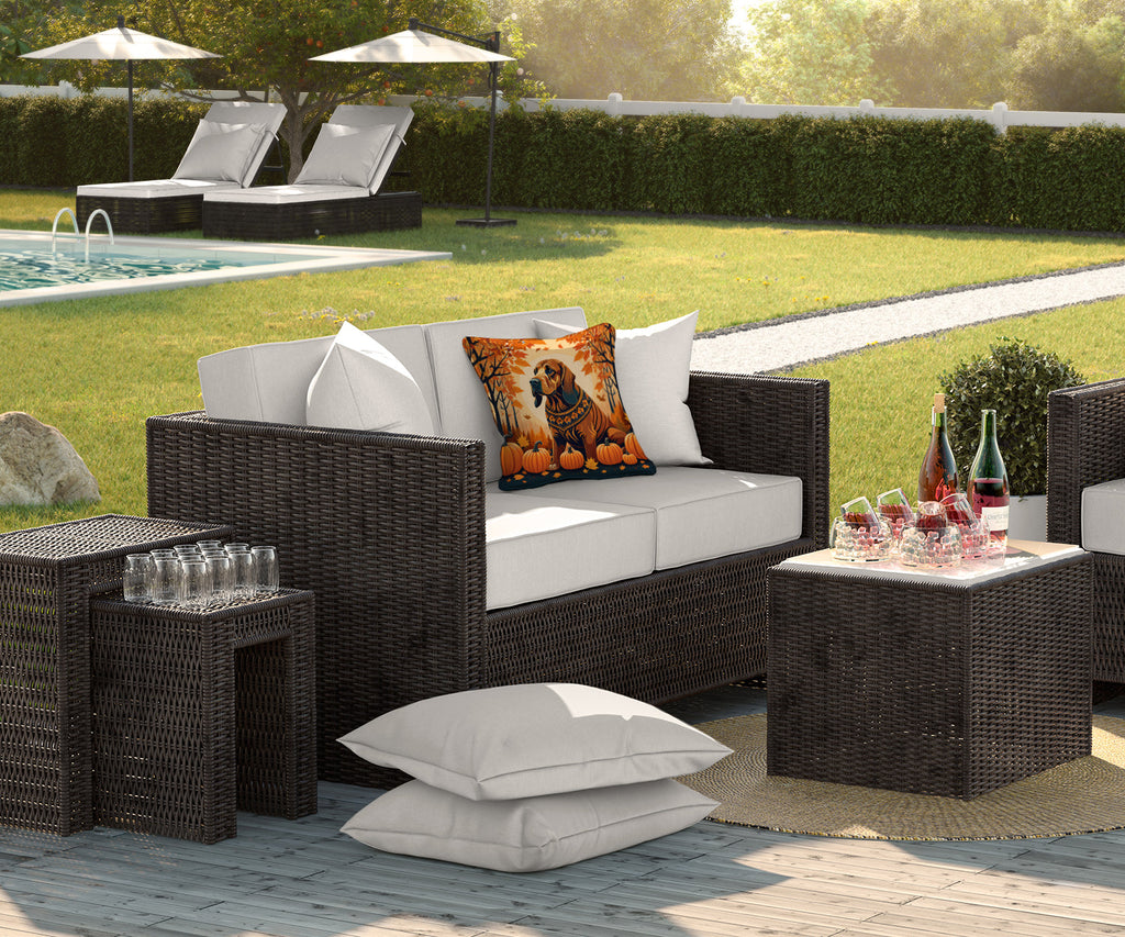 Shown here is the Bloodhound Fall Throw Pillow from Caroline's Treasures featuring artwork of a Bloodhound in a Fall design. The detailed illustration and vibrant colors make it a standout accent that celebrates both seasonal style for you home. Embrace the cozy charm of the season with our Falling Autumn Leaves Collection. Featuring rich, leaf-inspired designs that capture the colors and spirit of autumn, this collection brings warm style and seasonal flair to home d�cor and thoughtful fall gifts. Revitalize your outdoor or indoor living space with Caroline's Treasures 18x18 Fabric Decorative Pillow. With a generously sized dimension of approximately 18 inches by 18 inches, this pillow makes a comfortable and aesthetic addition to any seating area. Made from a unique, water-resistant material developed by Caroline's Treasures, the pillow sham is 100% polyester fabric that's durable and ready to weather any condition. Its vibrant, full-color artwork will not fade over time as it is dyed with color-fast dyes. Whether you place it on your patio furniture, porch, veranda, or indoor couch, its soft canvas fabric ensures a cozy experience. The pillow is handcrafted in the United States, featuring a sham created from three pieces of fabric and a polyester insert for enduring shape and overstuffed comfort. Despite being robustly built to endure the outdoors, it is as soft and snug as your favorite indoor cushions. Please note, as all our pillows are handmade, sizes may vary slightly, adding to the charm of this unique decorative item. Bloodhounds are scent hounds renowned for their exceptional tracking ability and gentle personality. This breed is admired for its determination, loyalty, and calm demeanor. Perfect for: Living rooms, bedrooms, couches, and chairs, seasonal or everyday decorating, Dogs-themed homes, or year-round display for Bloodhound fans. Makes a heartfelt gift for: Bloodhound owners, Dogs lovers, gifts, pet parents, friends who adore their Bloodhound, or anyone celebrating Dogs.